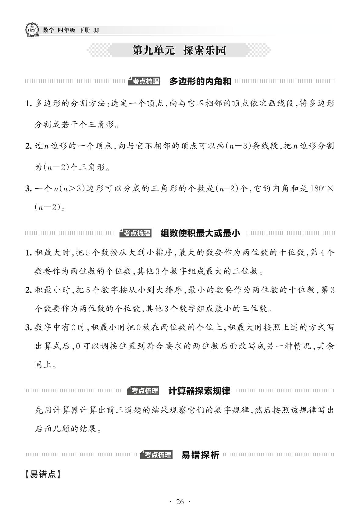 2022下册四年级数学冀教版 单元考点梳理——第九单元 探索乐园