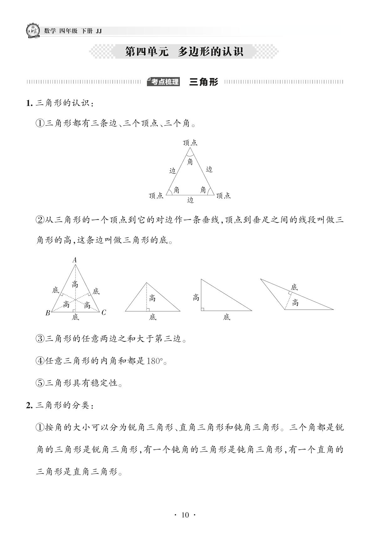 2022下册四年级数学冀教版 单元考点梳理——第四单元 多边形的认识