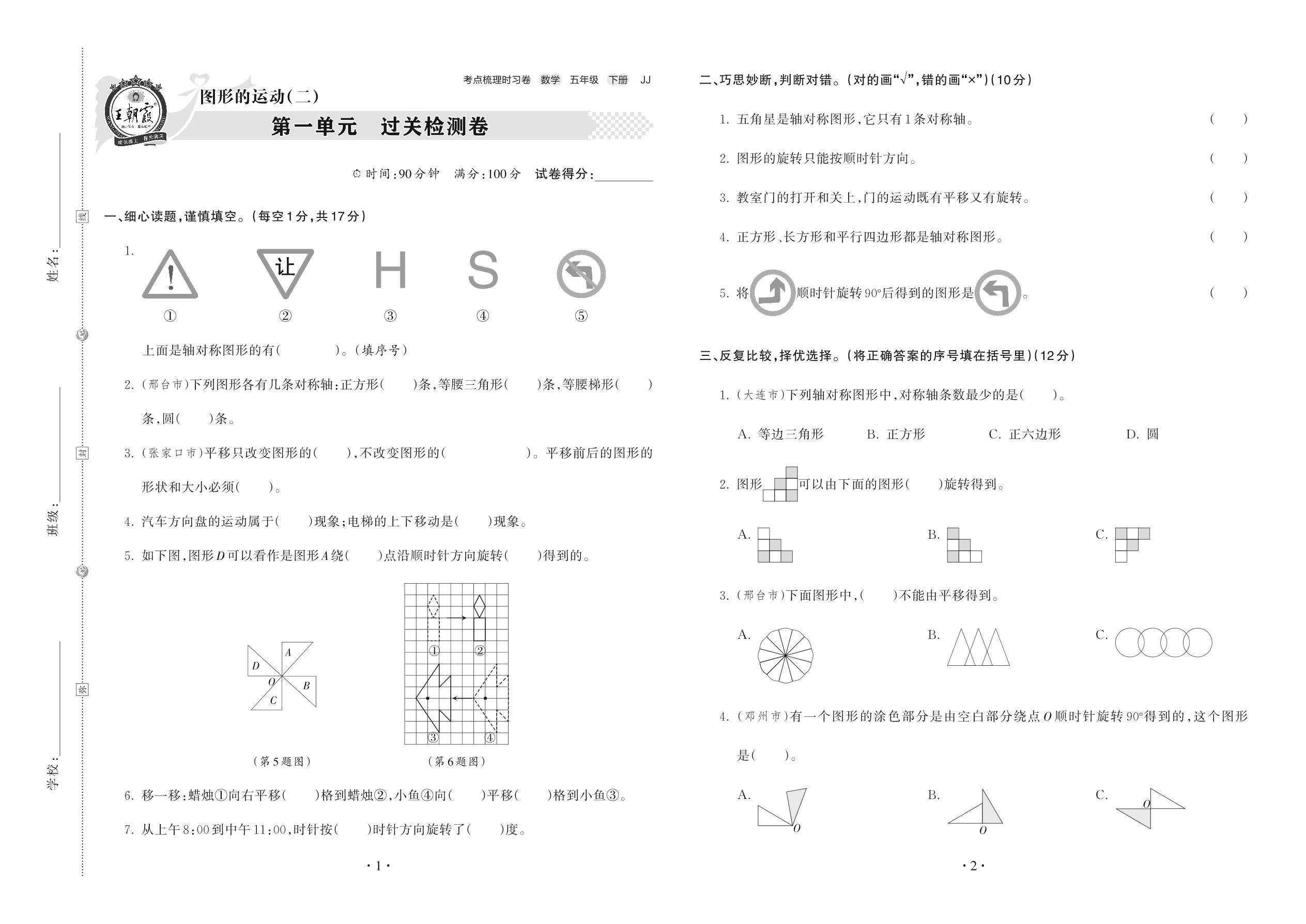 2022下册五年级数学冀教版 第一单元 过关检测卷