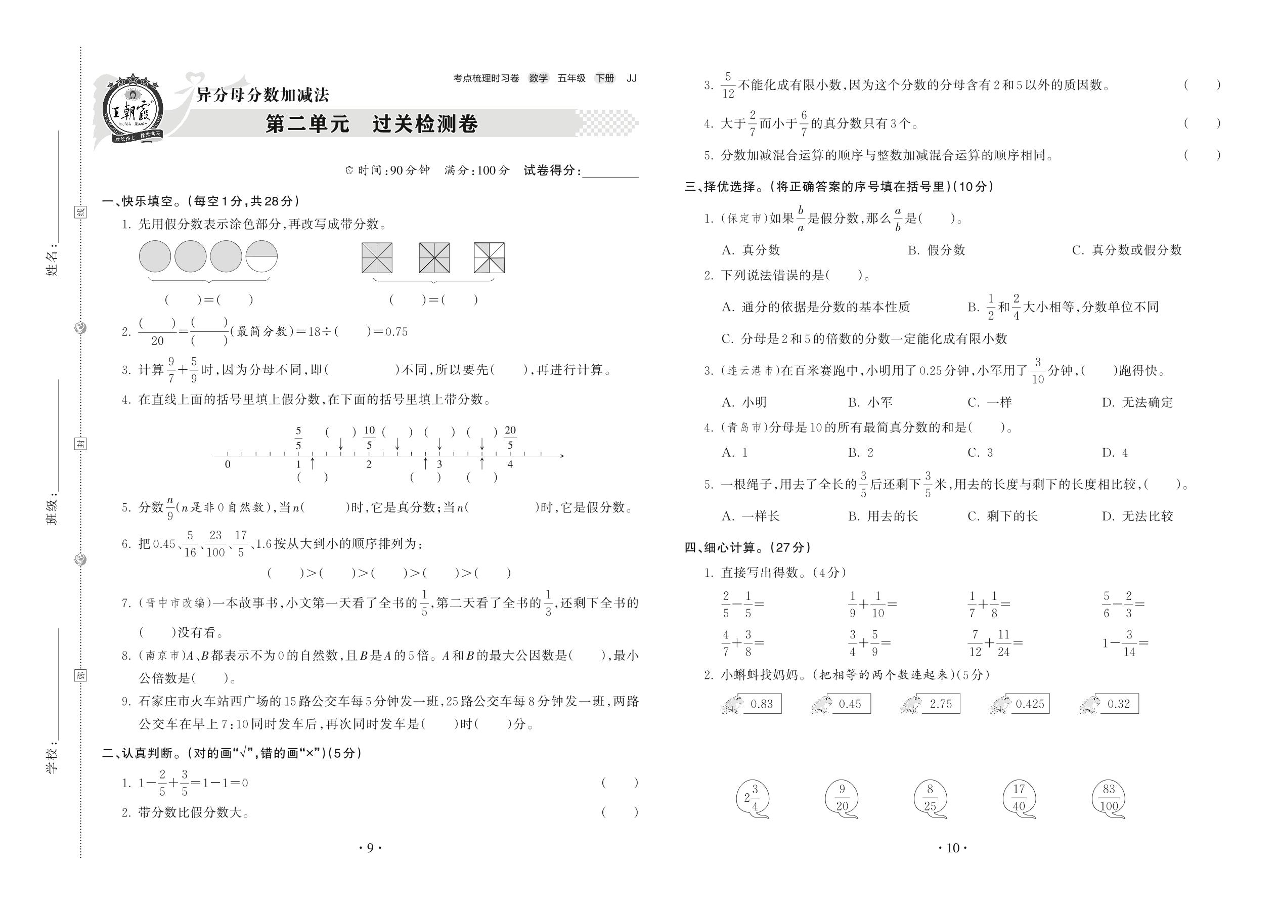 2022下册五年级数学冀教版 第二单元 过关检测卷