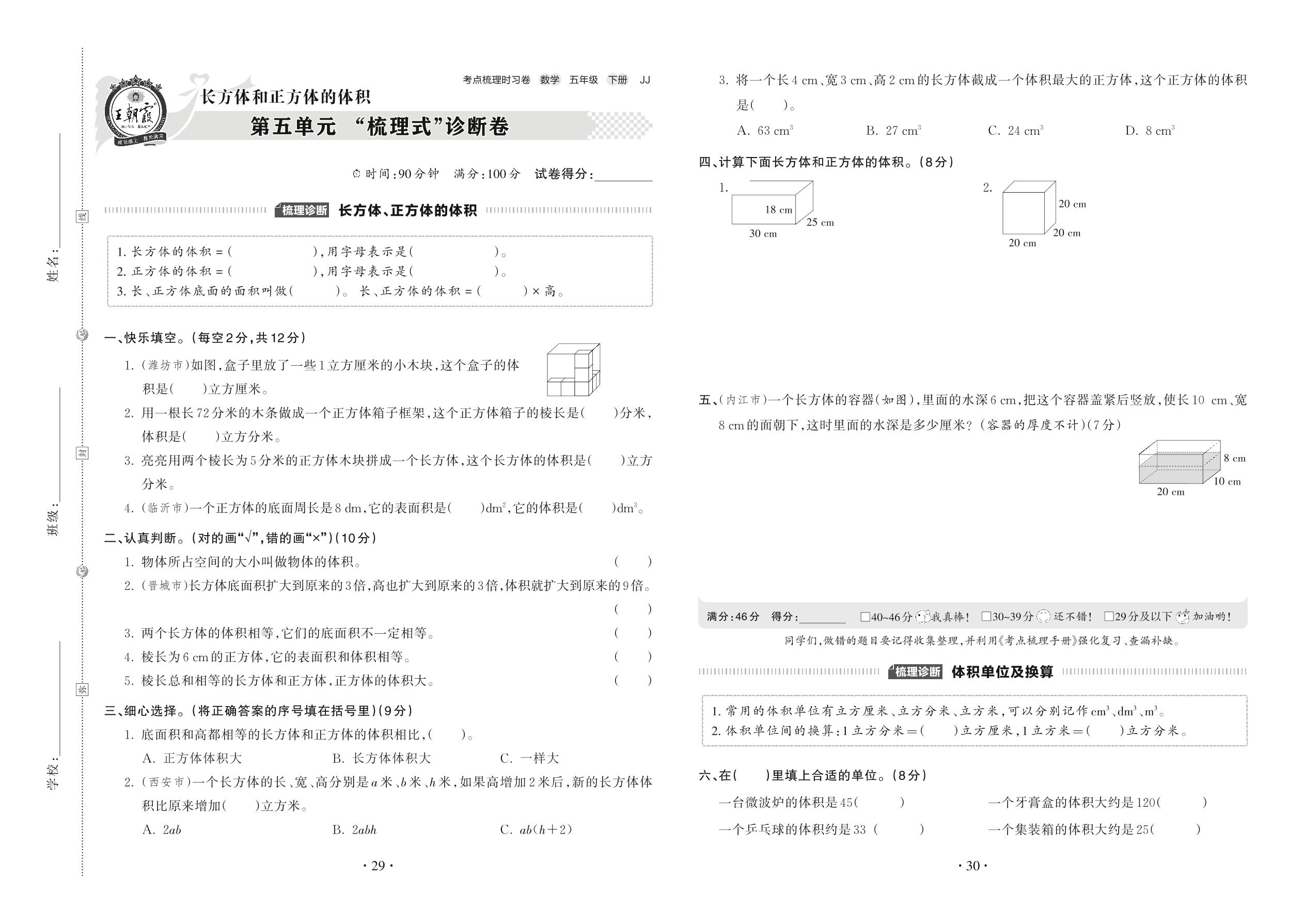 2022下册五年级数学冀教版 第五单元 “梳理式”诊断卷