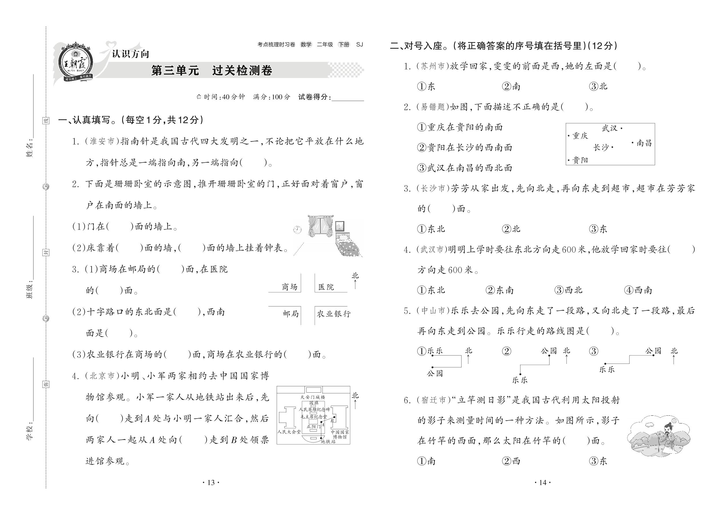 二年级数学苏教版下册单元卷