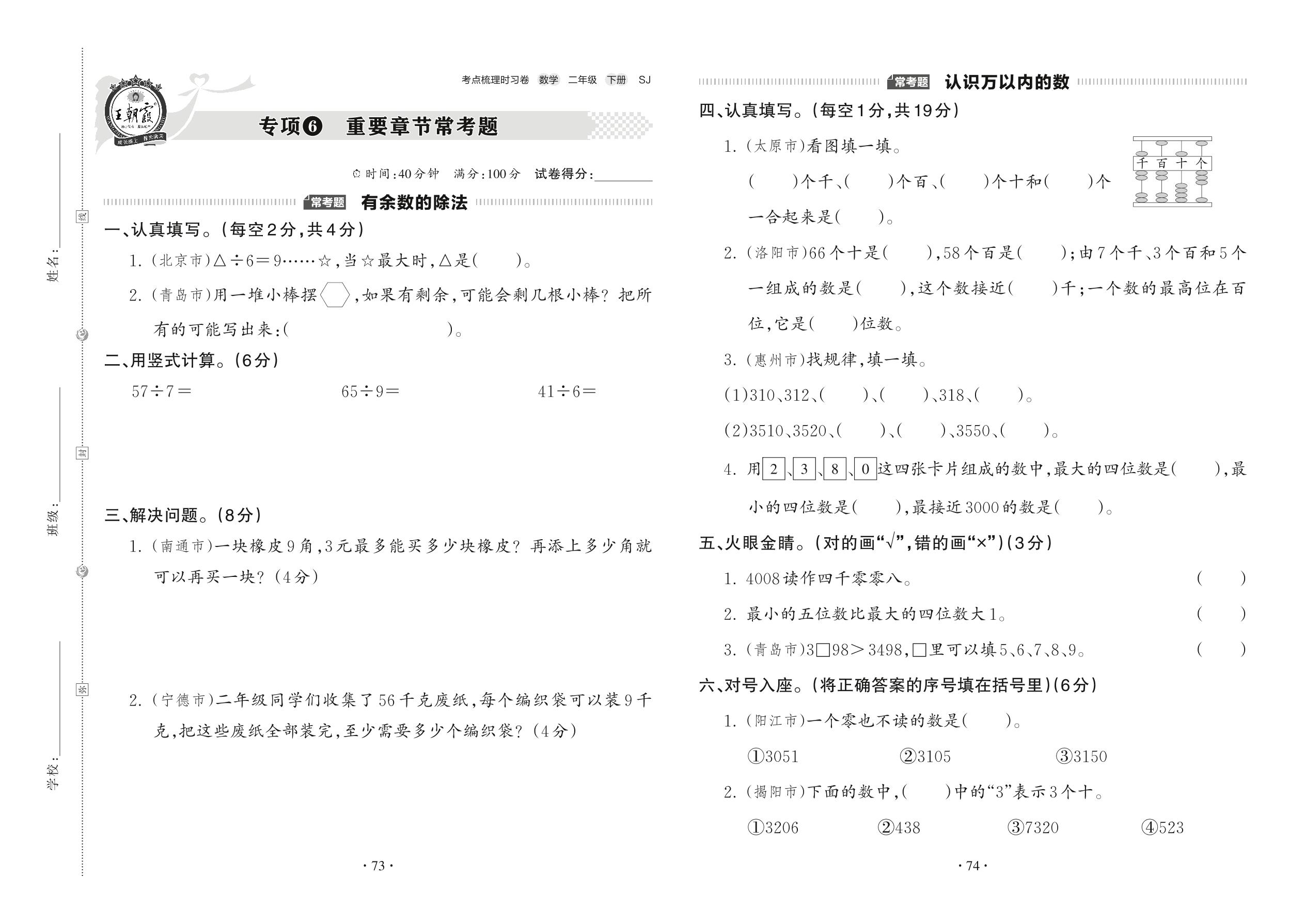 2022下册二年级数学苏教版 专项6 重要章节常考题