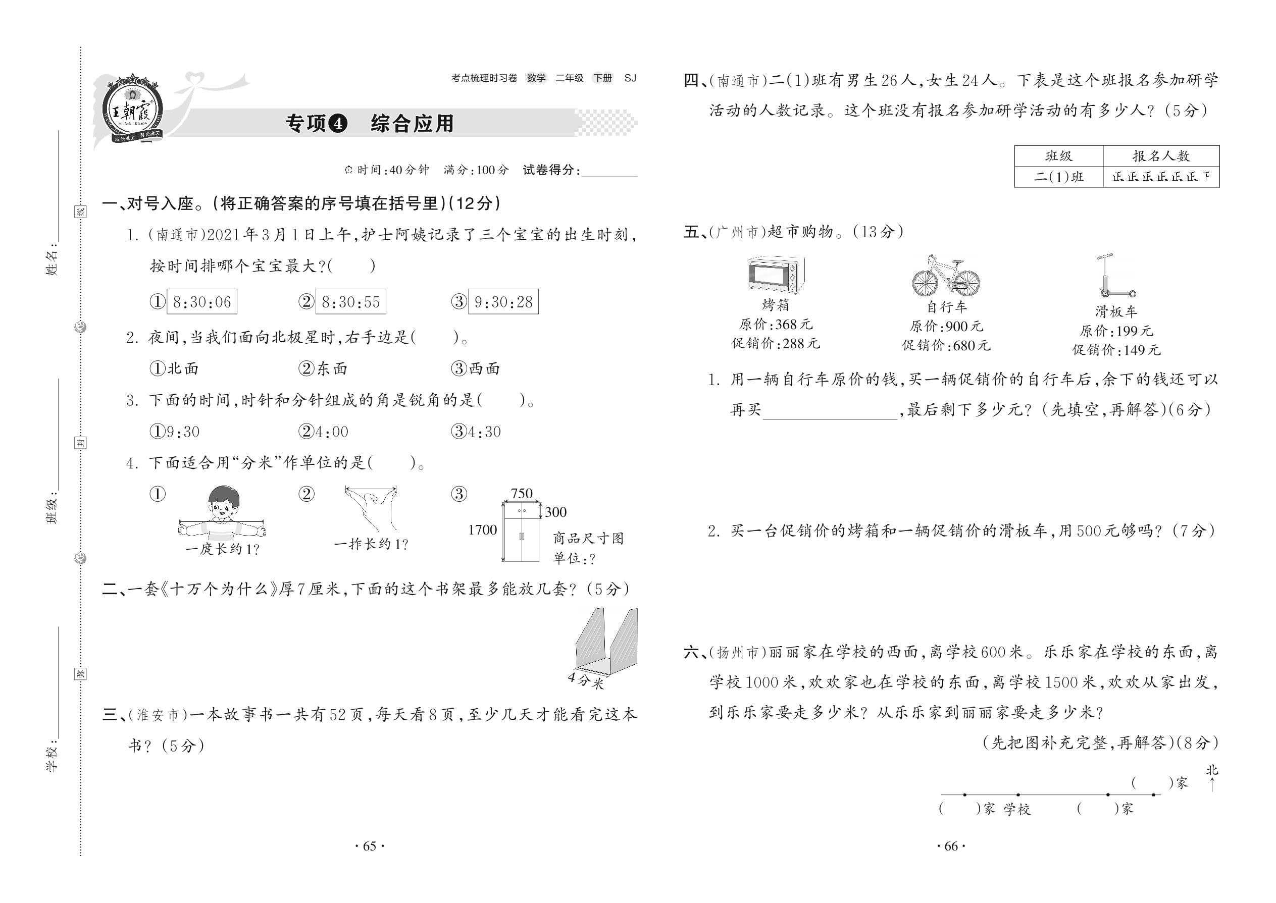 2022下册二年级数学苏教版 专项4 综合应用
