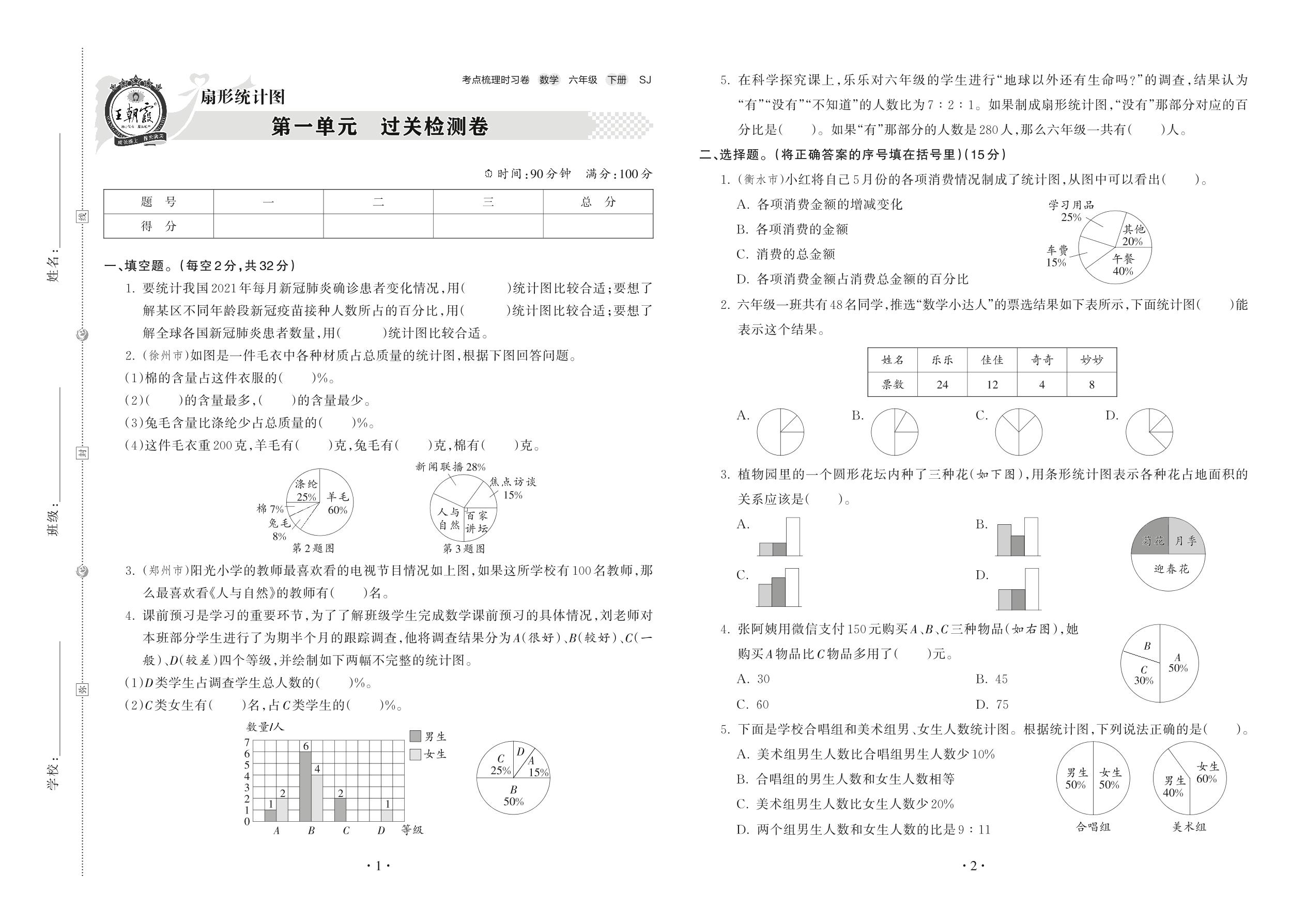 2022下册六年级数学苏教版 第一单元 过关检测卷