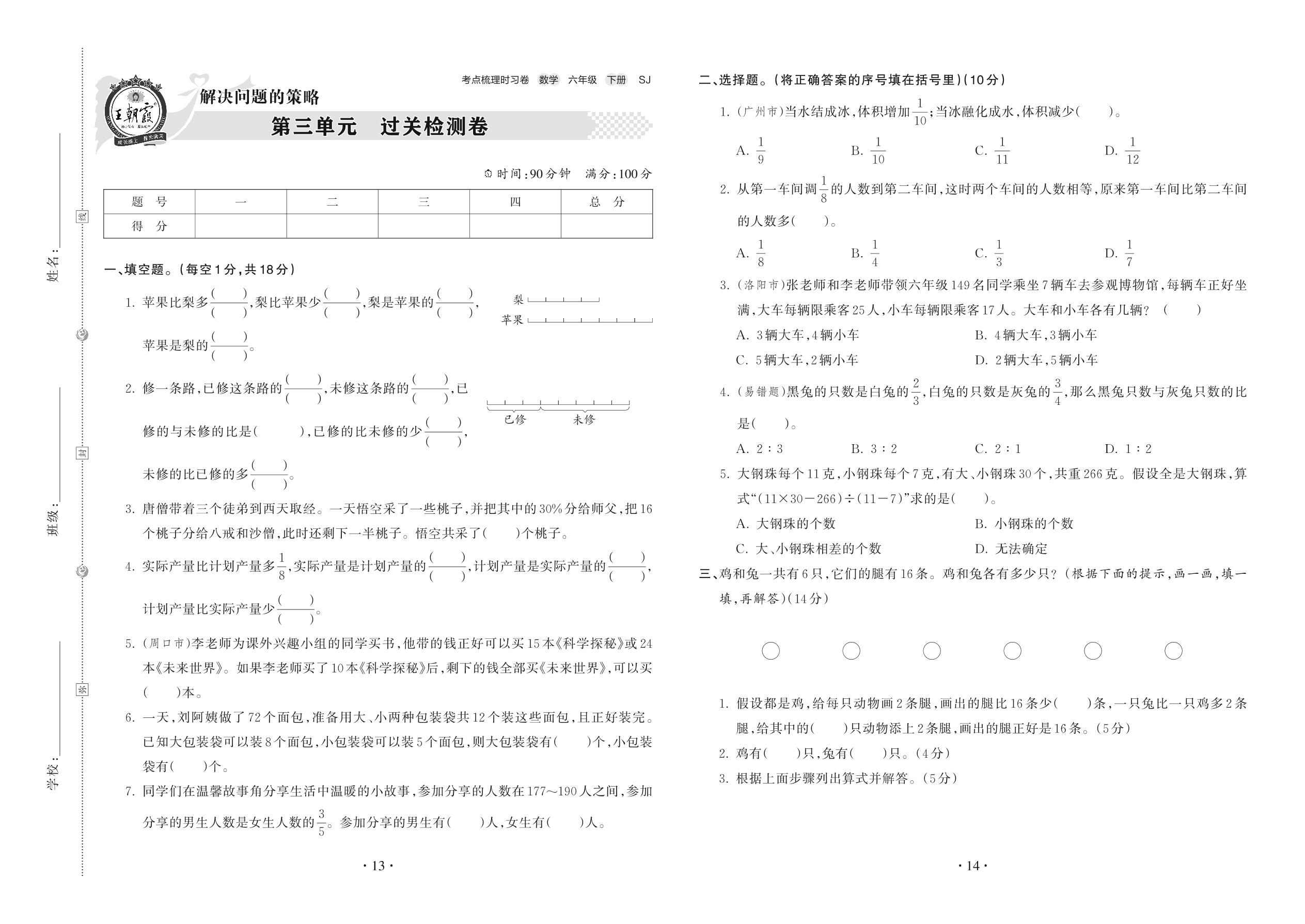 2022下册六年级数学苏教版 第三单元 过关检测卷
