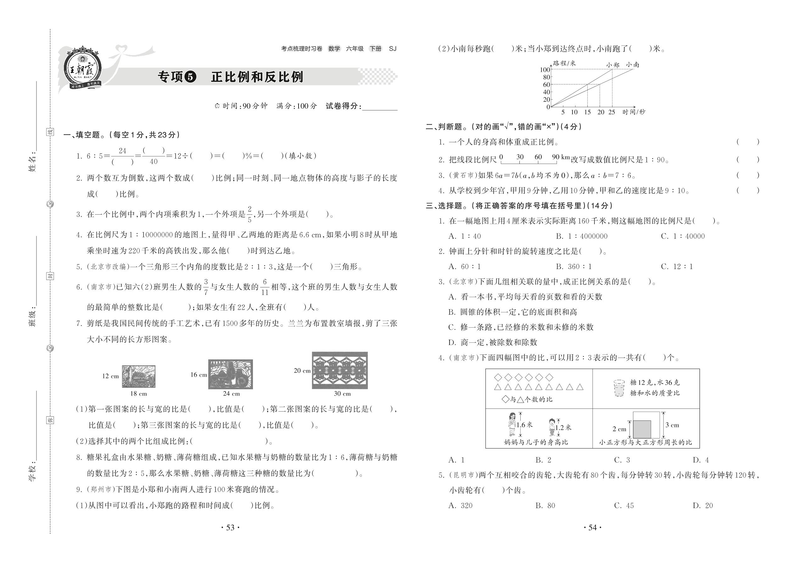2022下册六年级数学苏教版 专项5 正比例和反比例