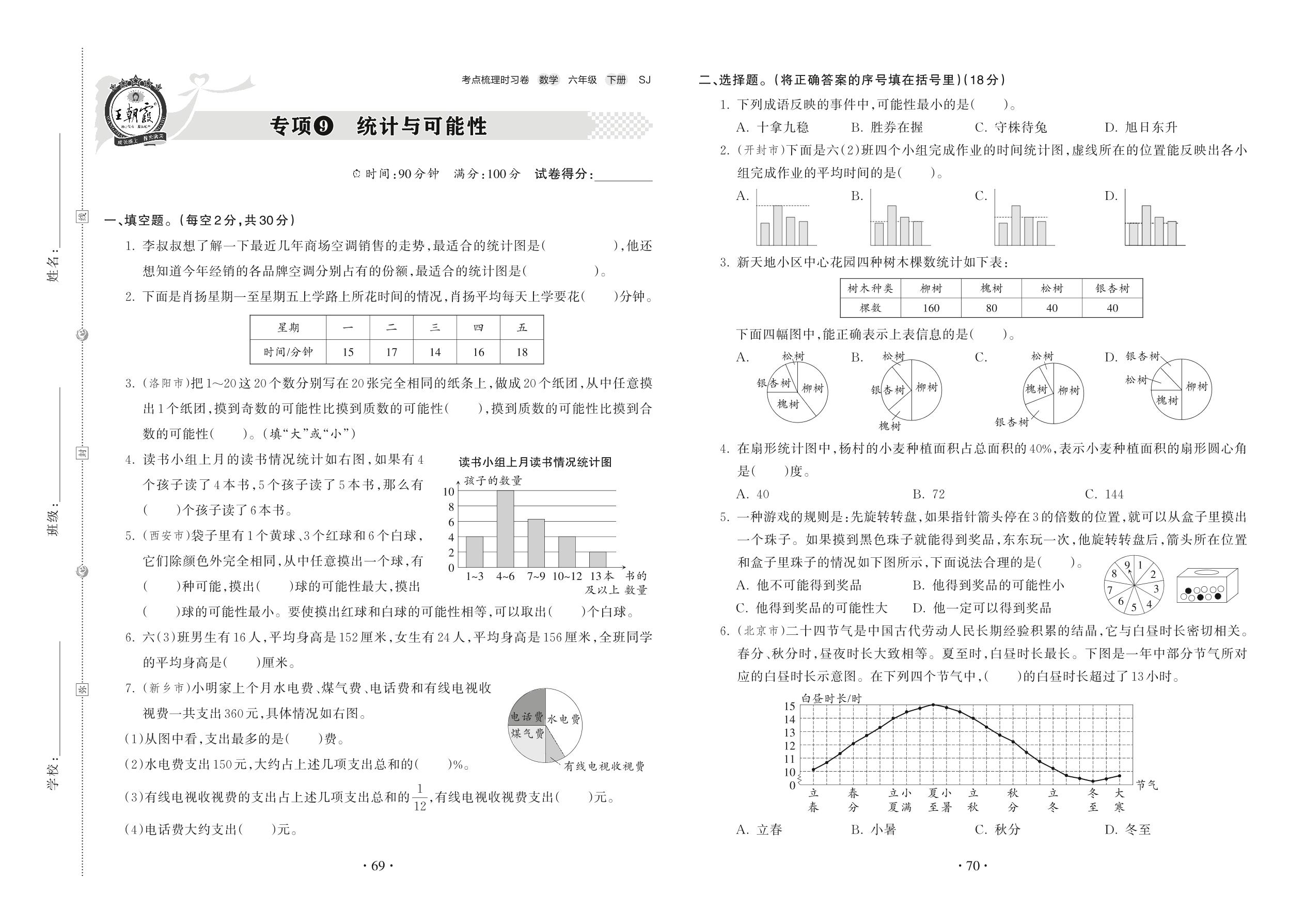 2022下册六年级数学苏教版 专项9 统计与可能性