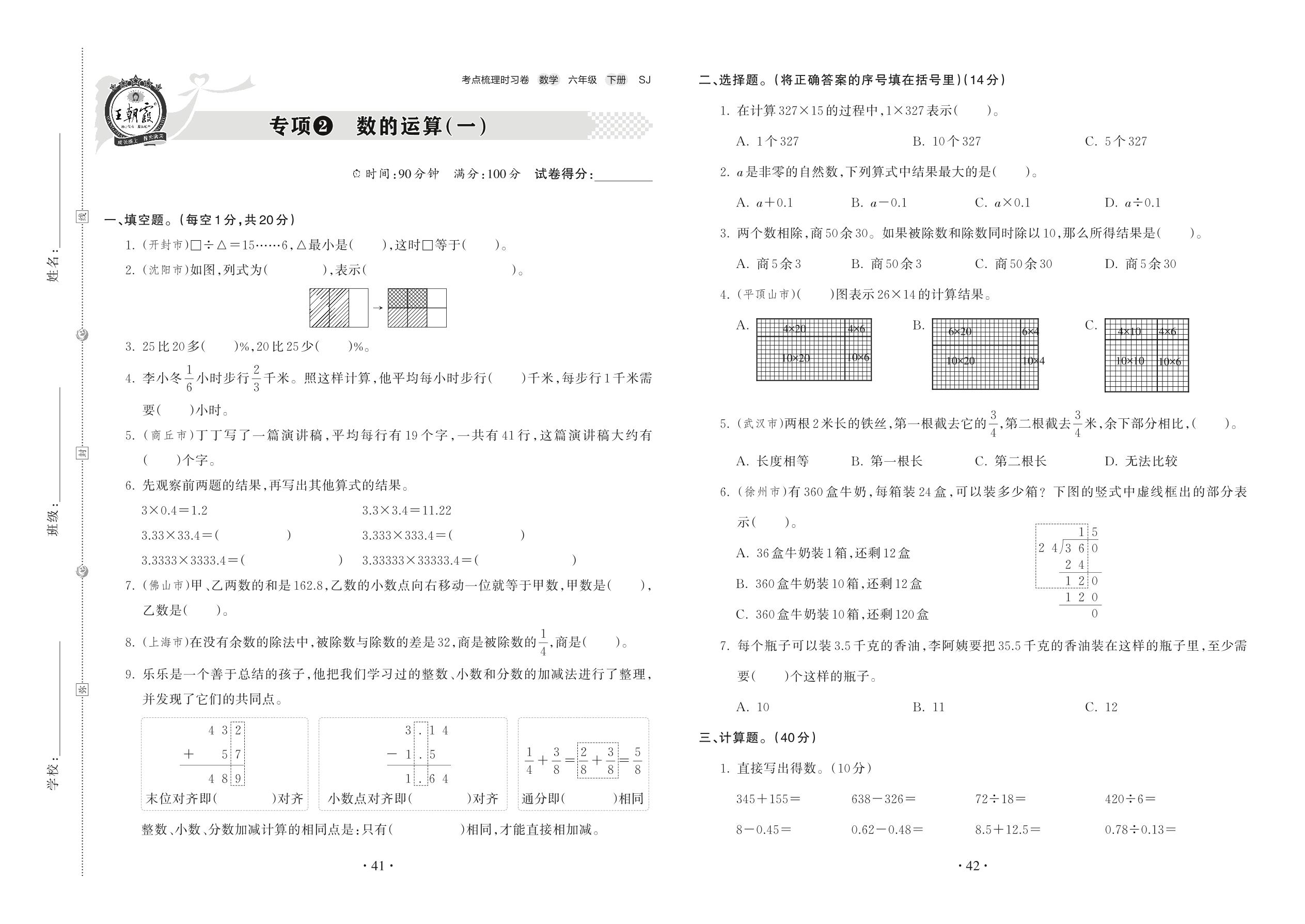 2022下册六年级数学苏教版 专项2 数的运算(一)