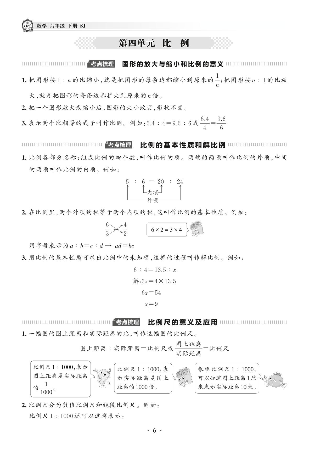 2022下册六年级数学苏教版 单元考点梳理——第四单元 比例