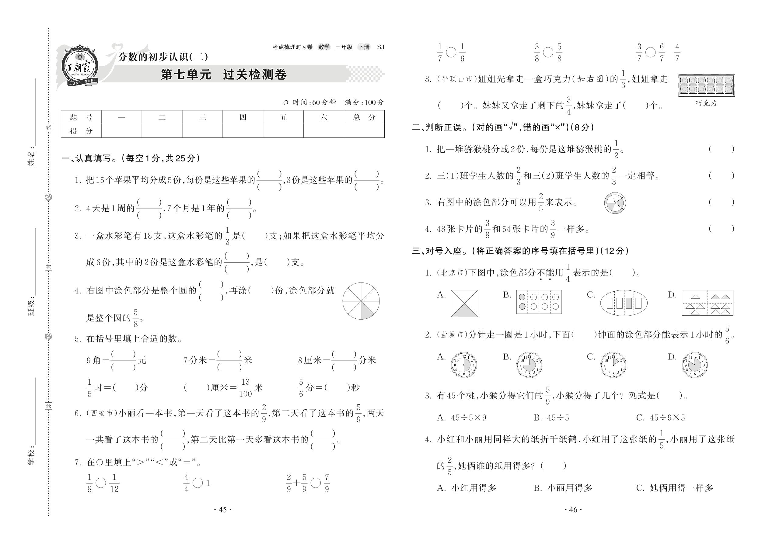 三年级数学苏教版下册单元卷