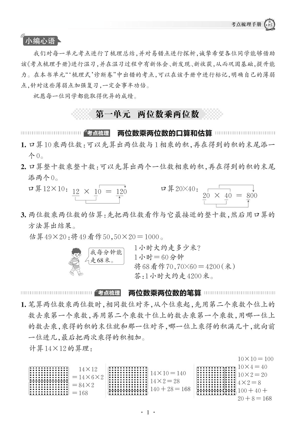2022下册三年级数学苏教版 单元考点梳理——第一单元 两位数乘两位数