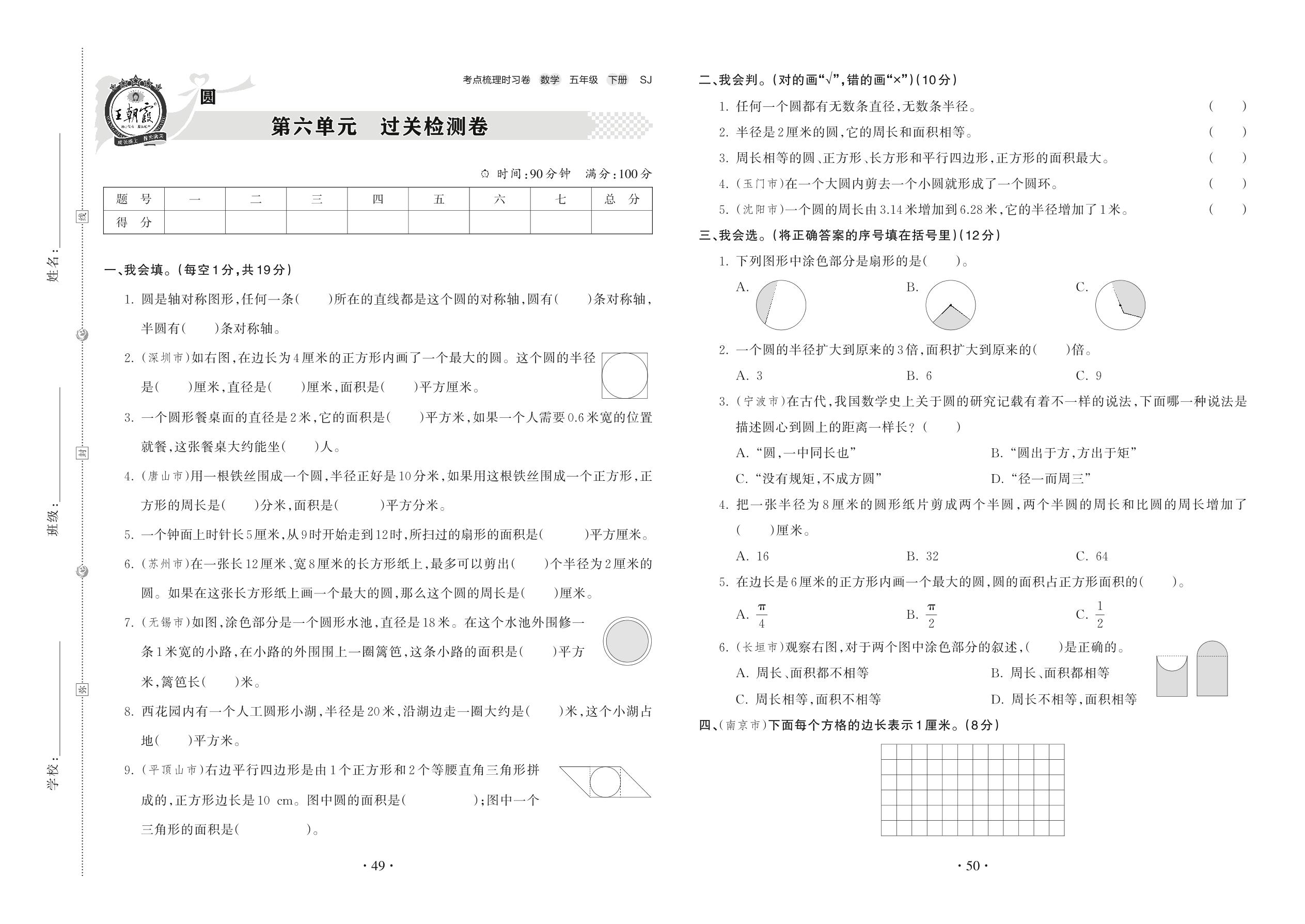 2022下册五年级数学苏教版 第六单元 过关检测卷