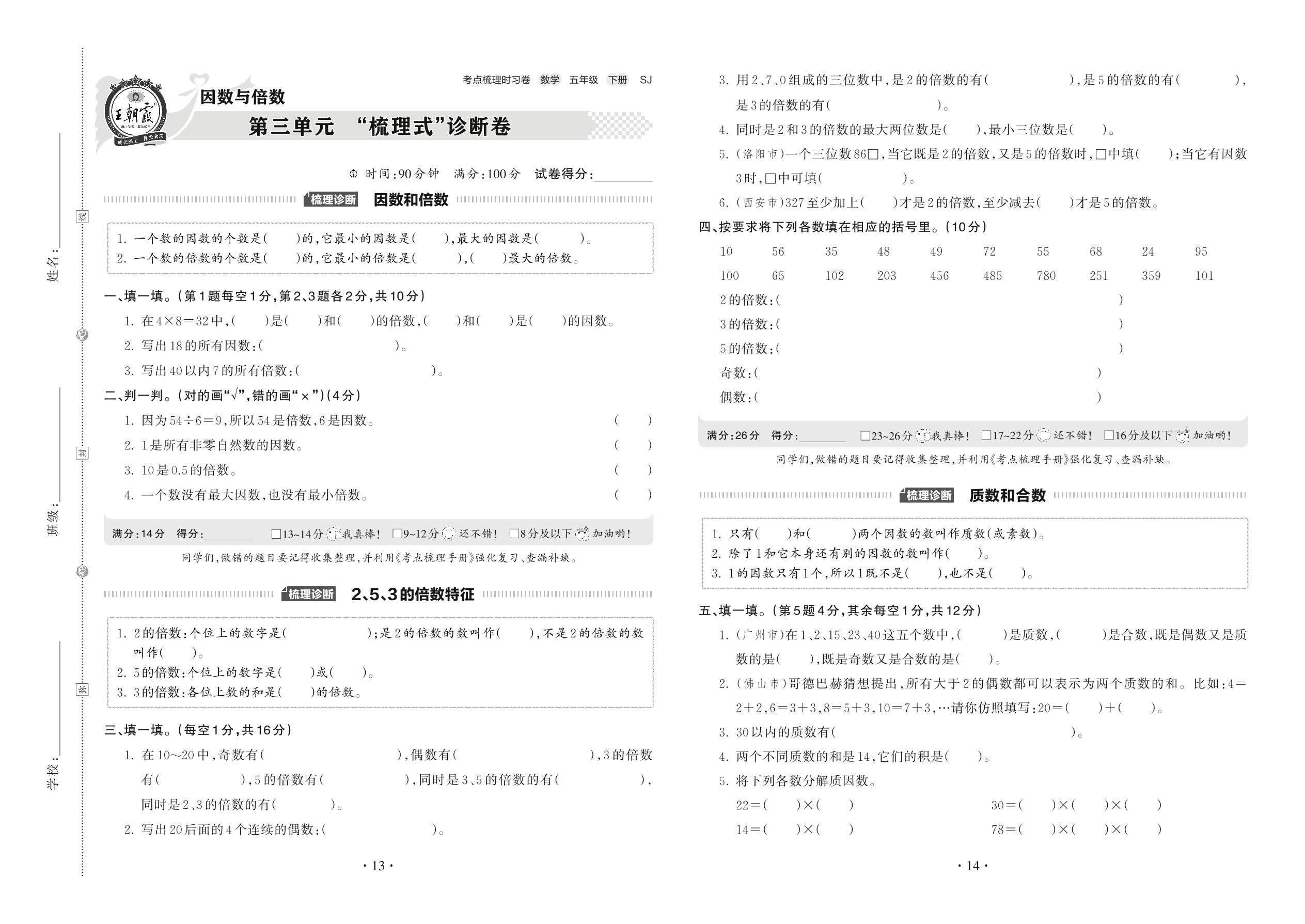 2022下册五年级数学苏教版 第三单元 “梳理式”诊断卷