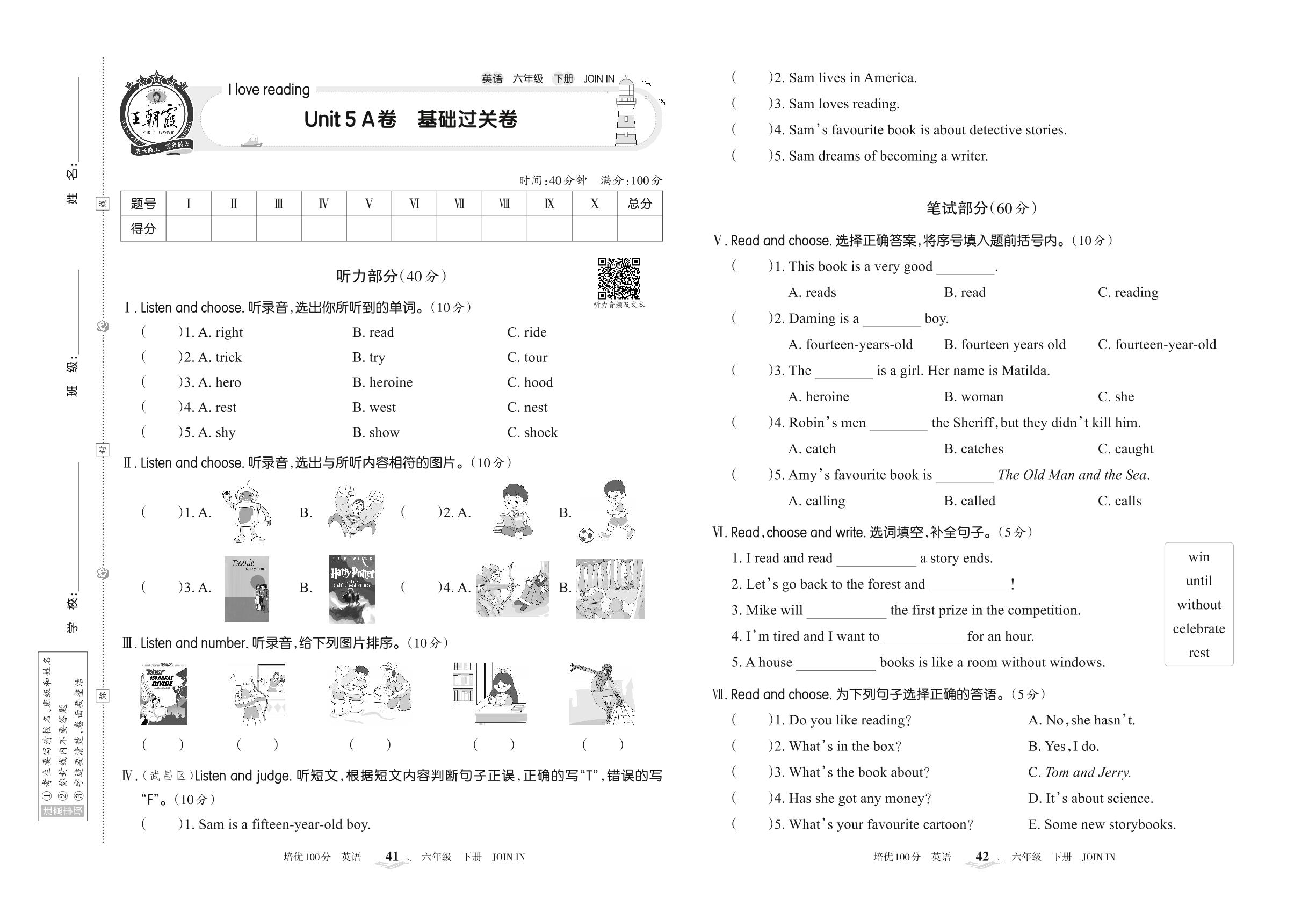 六年级英语剑桥版下册单元卷