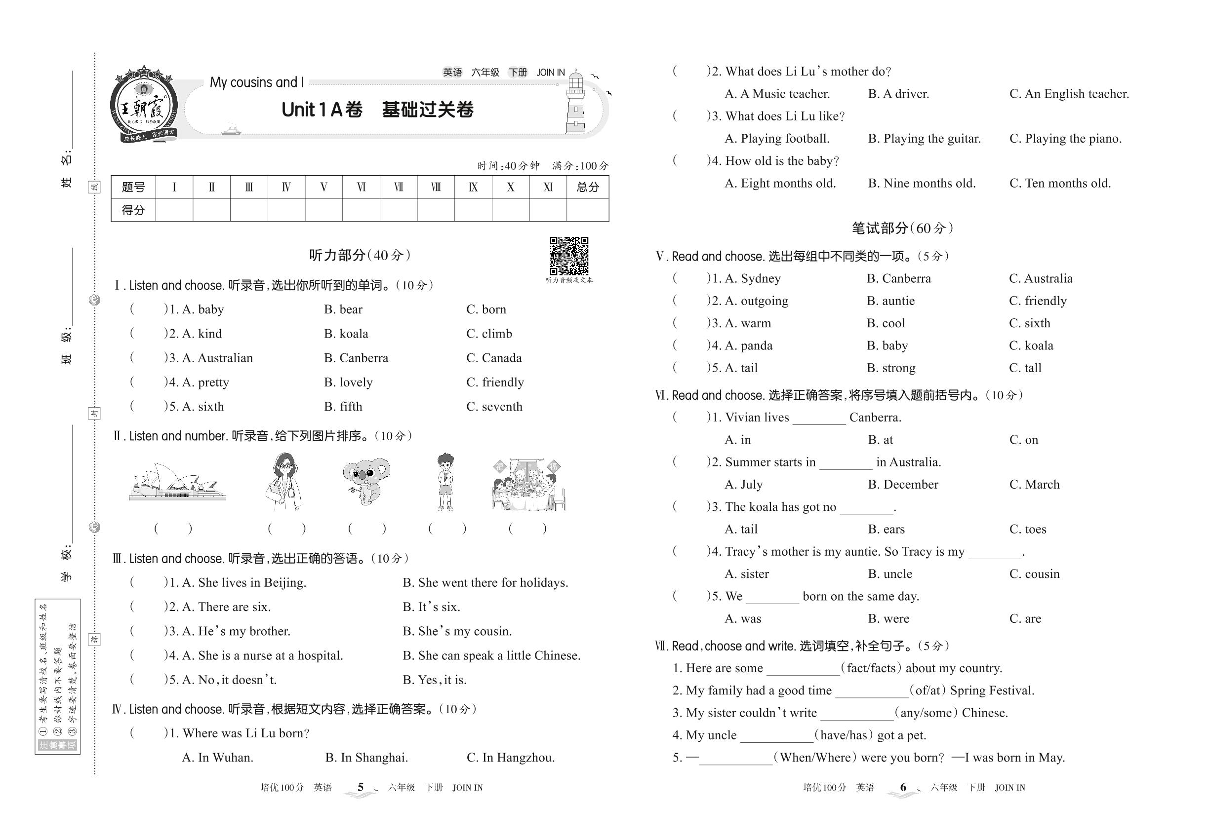 六年级英语剑桥版下册单元卷