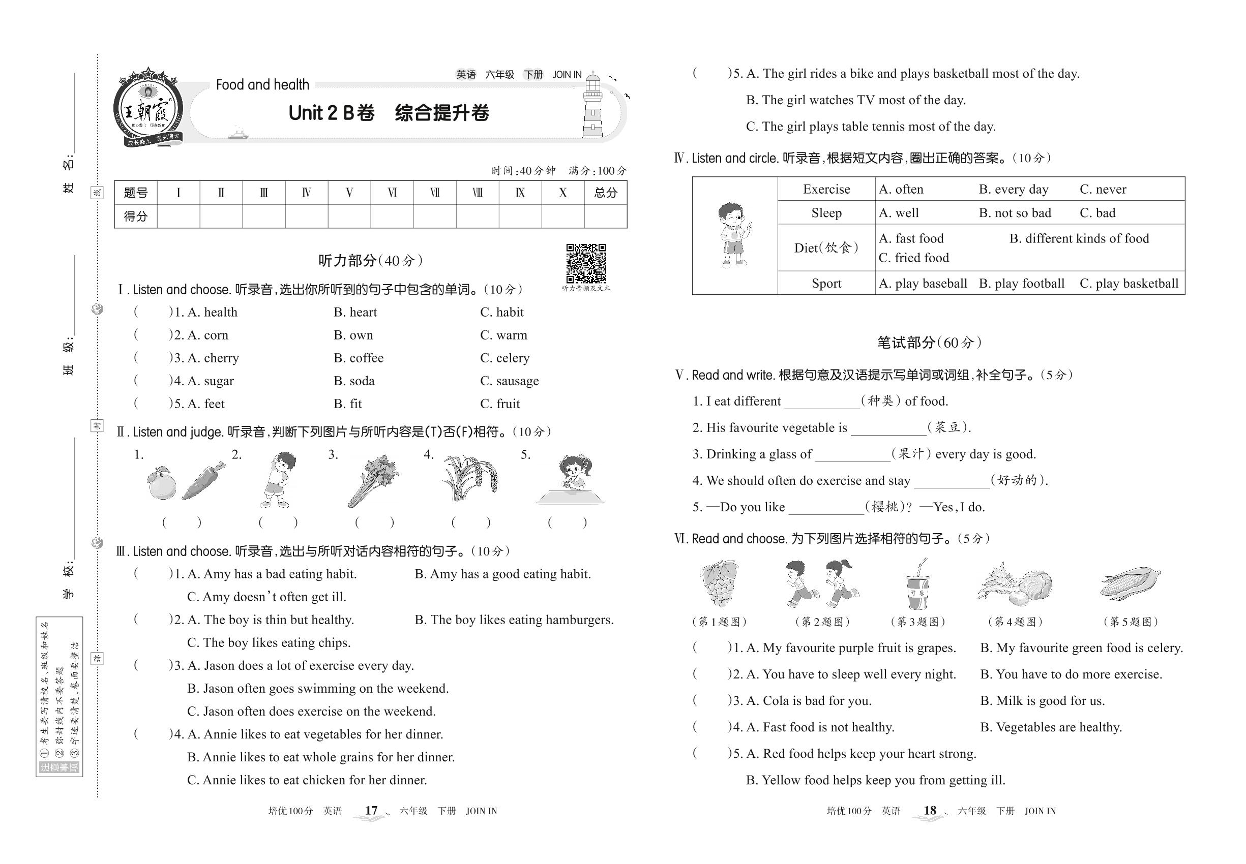 2022下册六年级英语剑桥版 Unit 2 B卷 综合提升卷