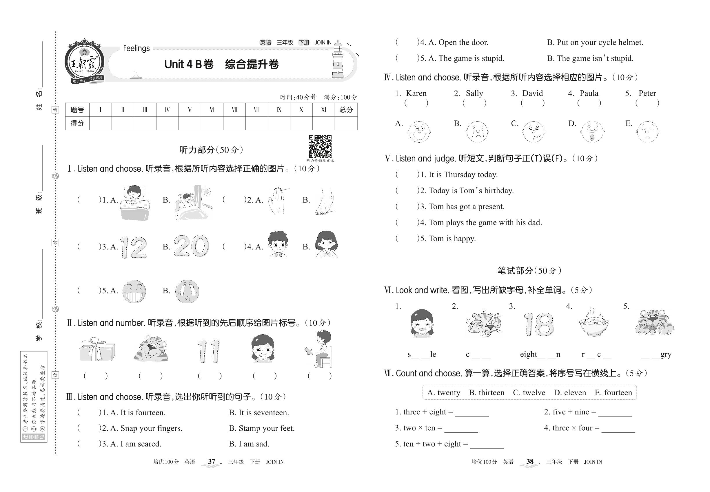 2022下册三年级英语剑桥版 Unit 4 B卷 综合提升卷