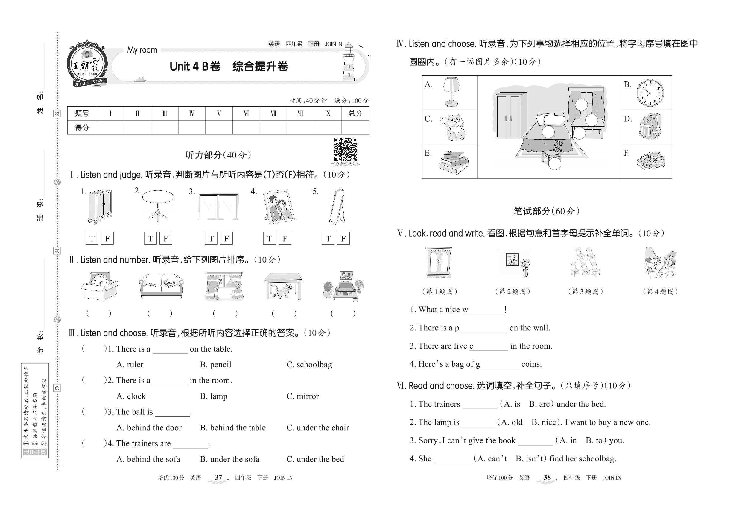 2022下册四年级英语剑桥版 Unit 4 B卷 综合提升卷