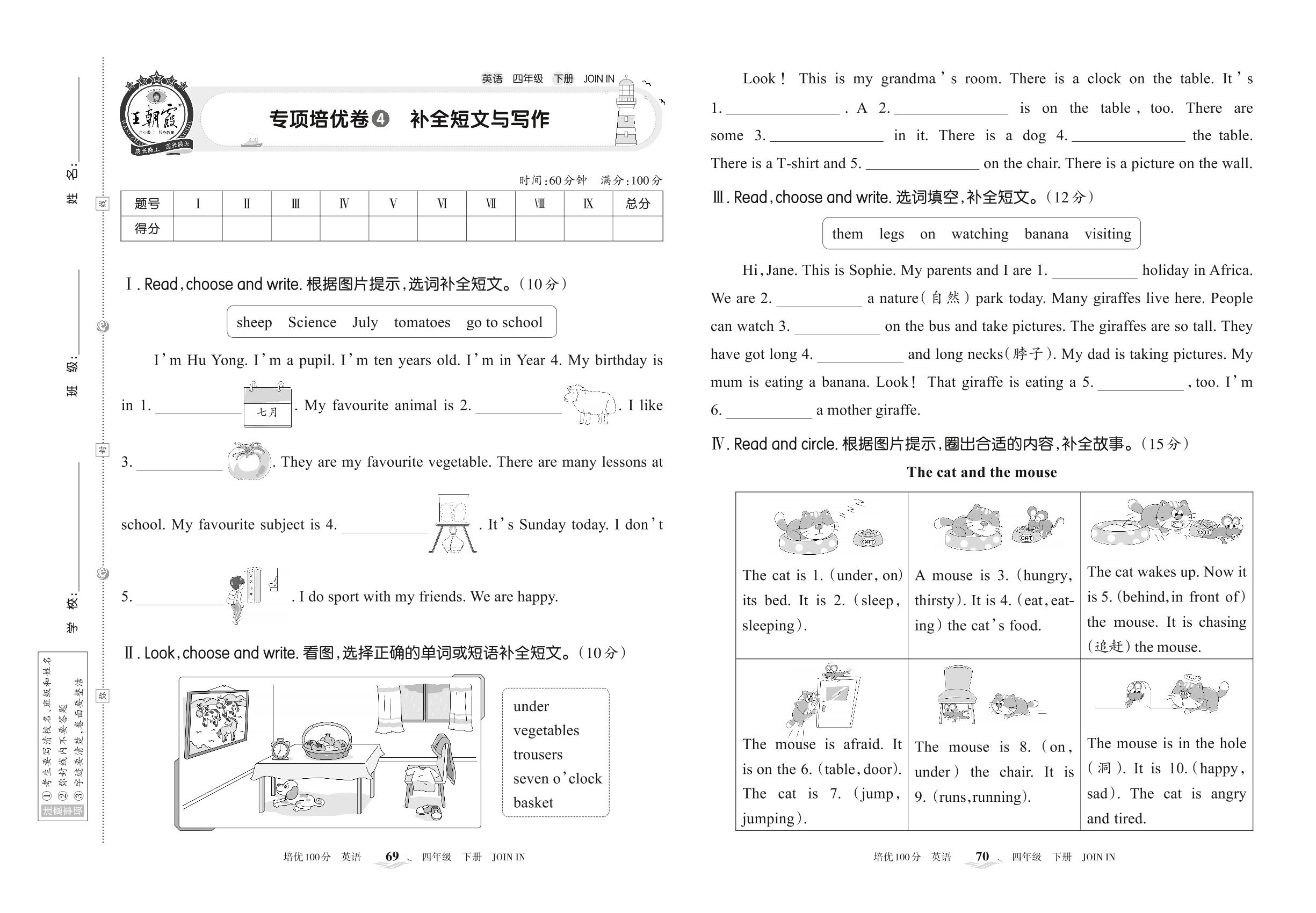 2022下册四年级英语剑桥版 专项培优卷4 补全短文与写作
