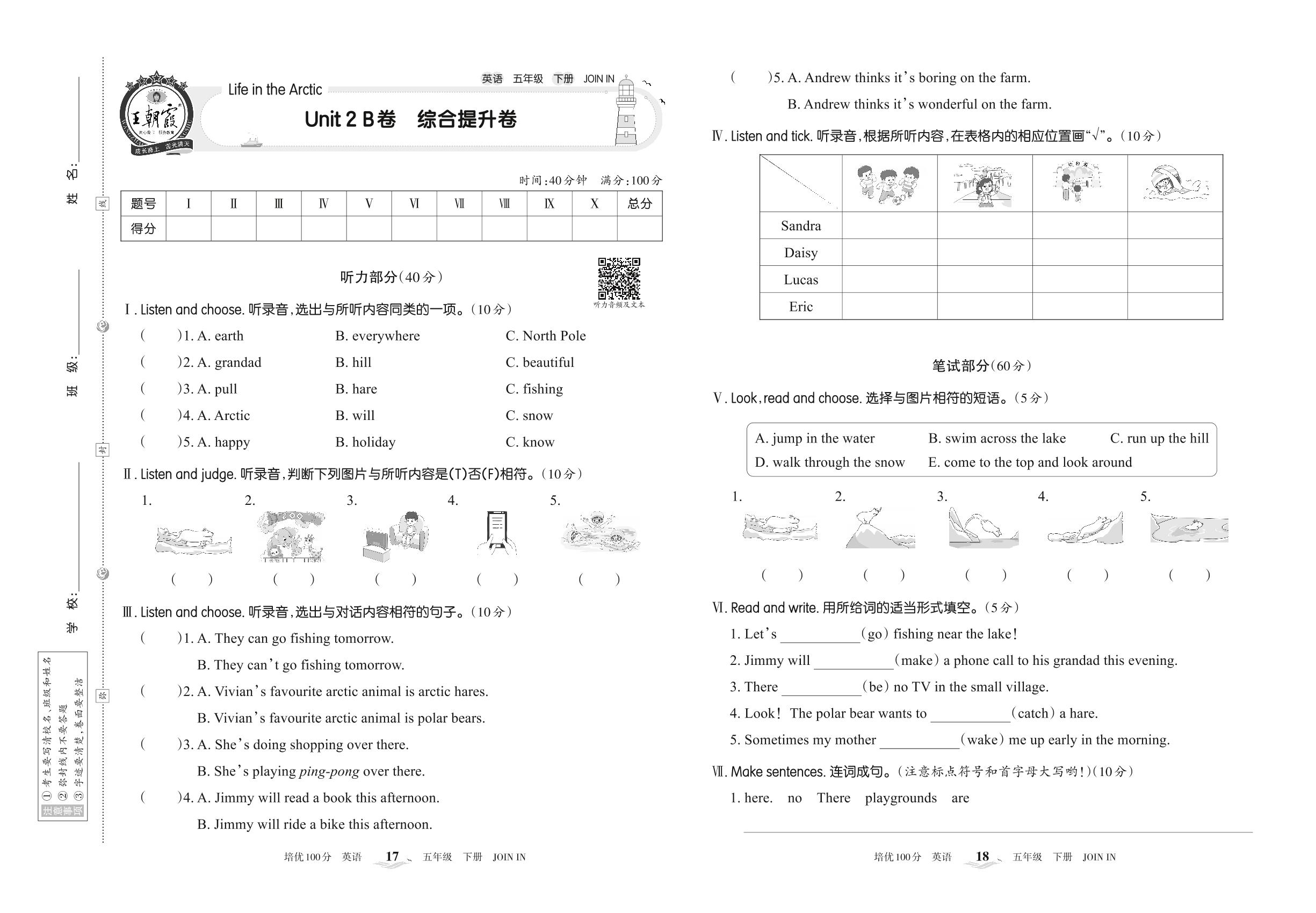 2022下册五年级英语剑桥版 Unit 2 B卷 综合提升卷