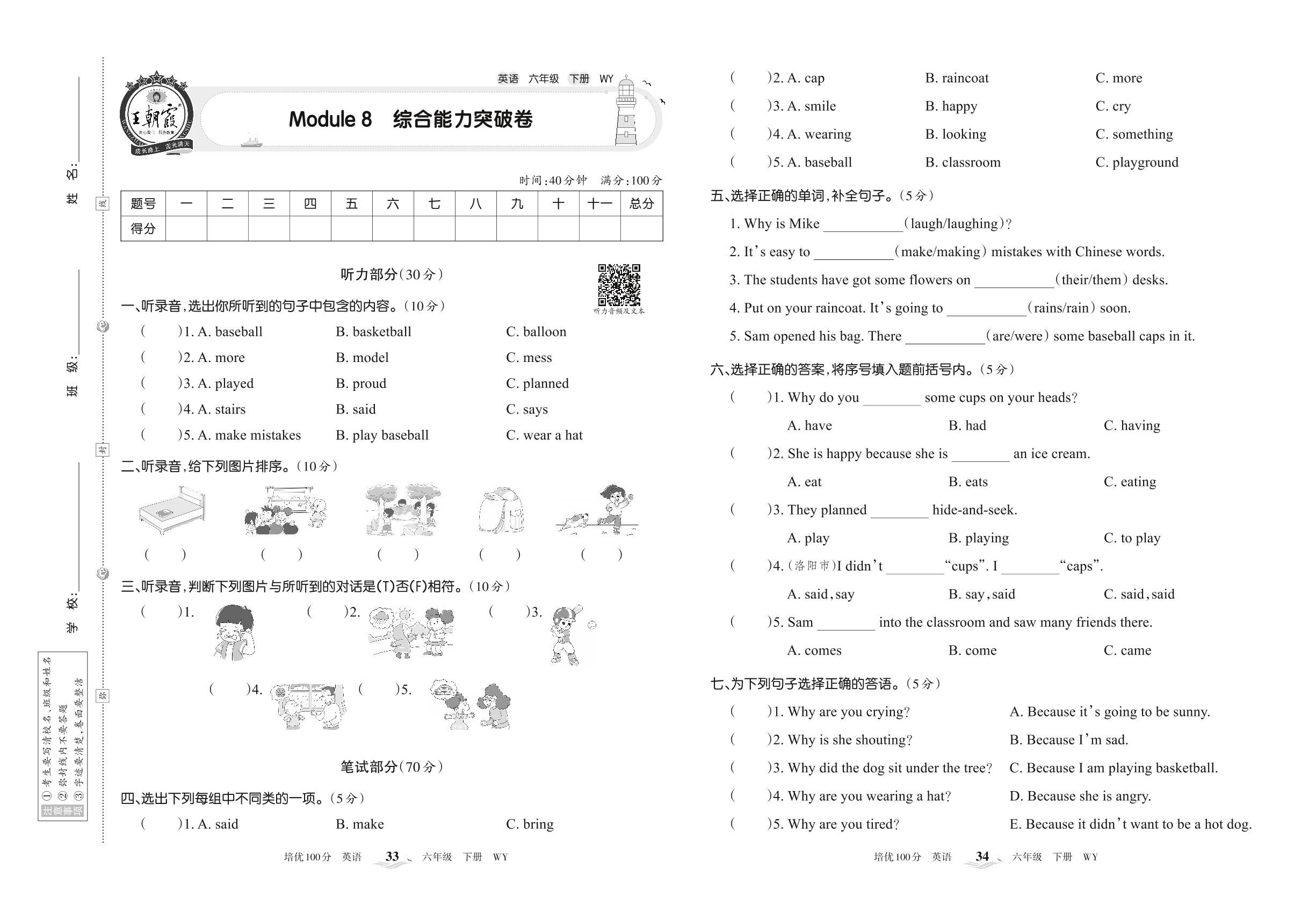 2022下册六年级英语外研版 Module 8 综合能力突破卷