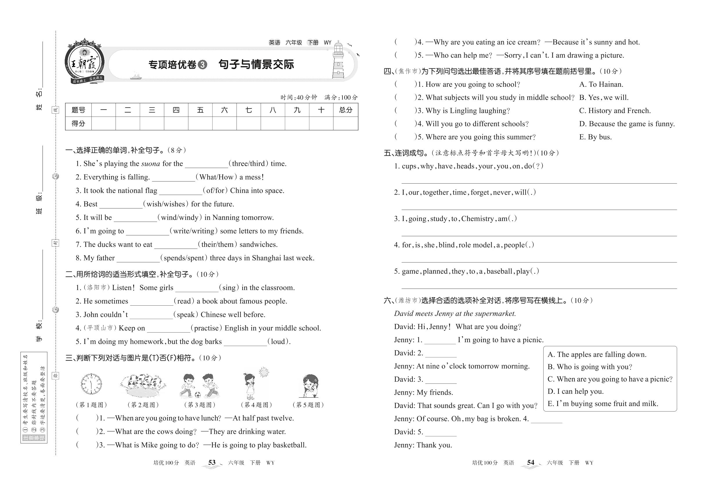 2022下册六年级英语外研版 专项培优卷3 句子与情景交际