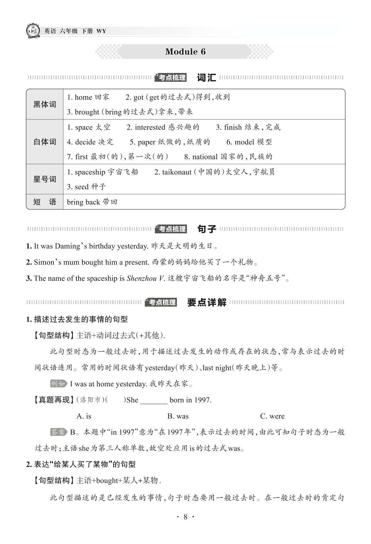 2022下册六年级英语外研版 单元考点梳理——Module 6