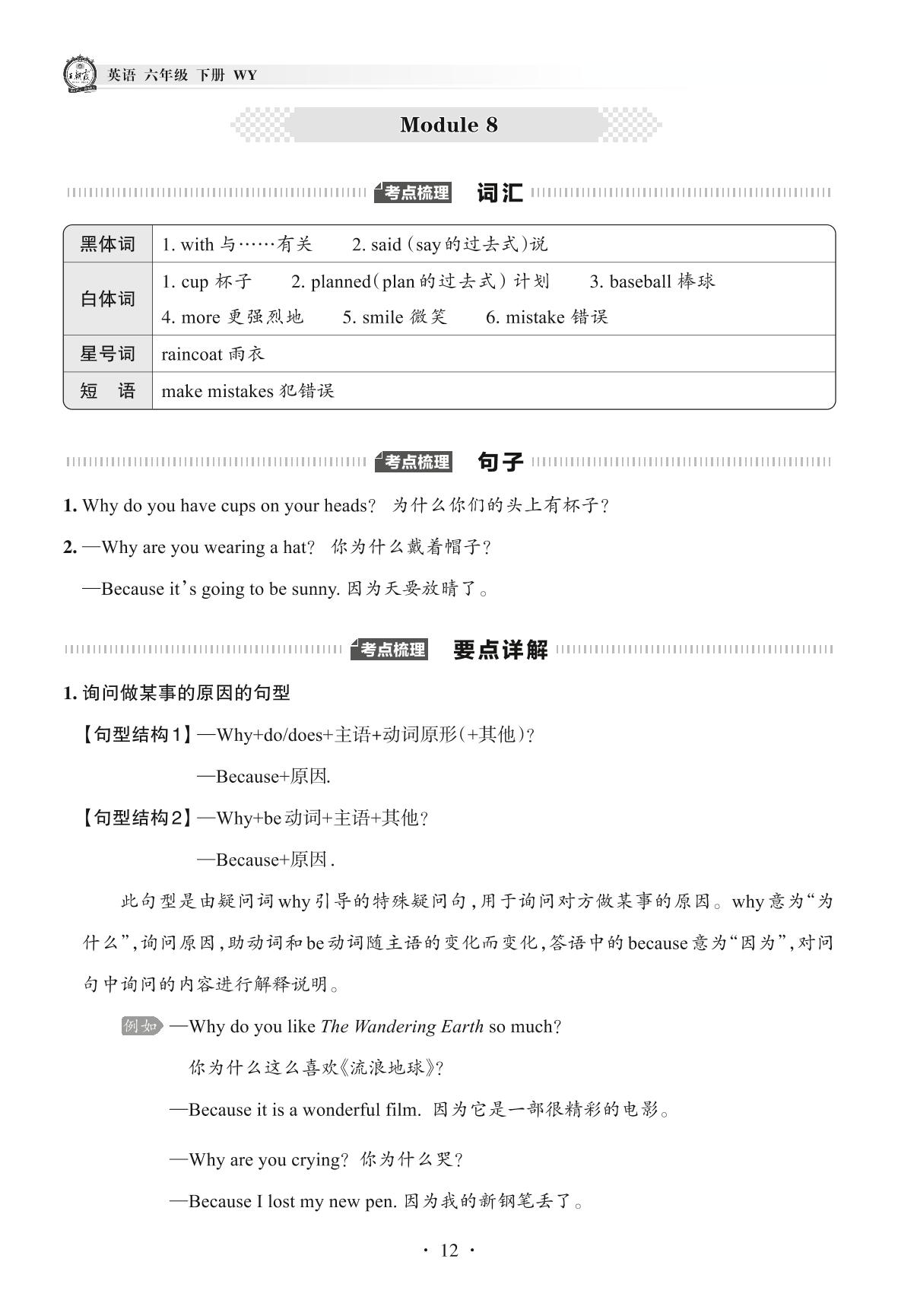2022下册六年级英语外研版 单元考点梳理——Module 8