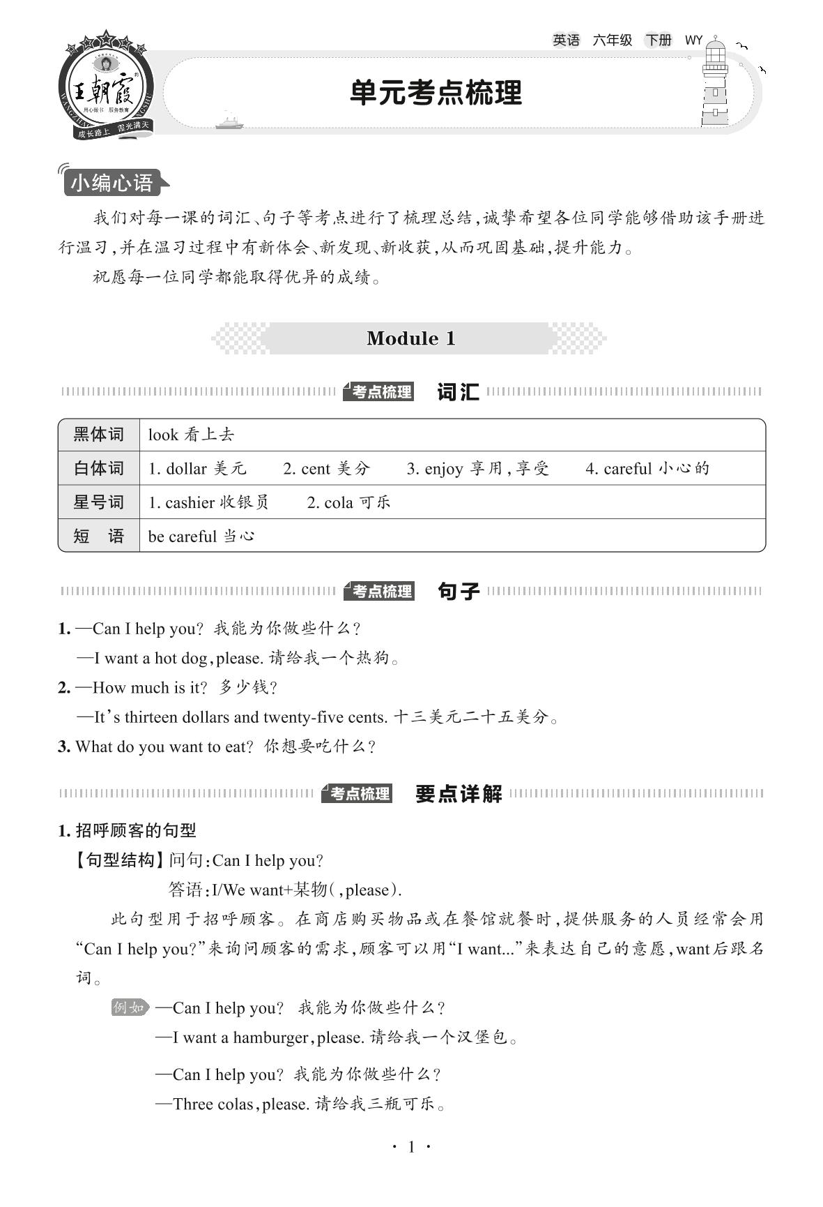 2022下册六年级英语外研版 单元考点梳理——Module 1