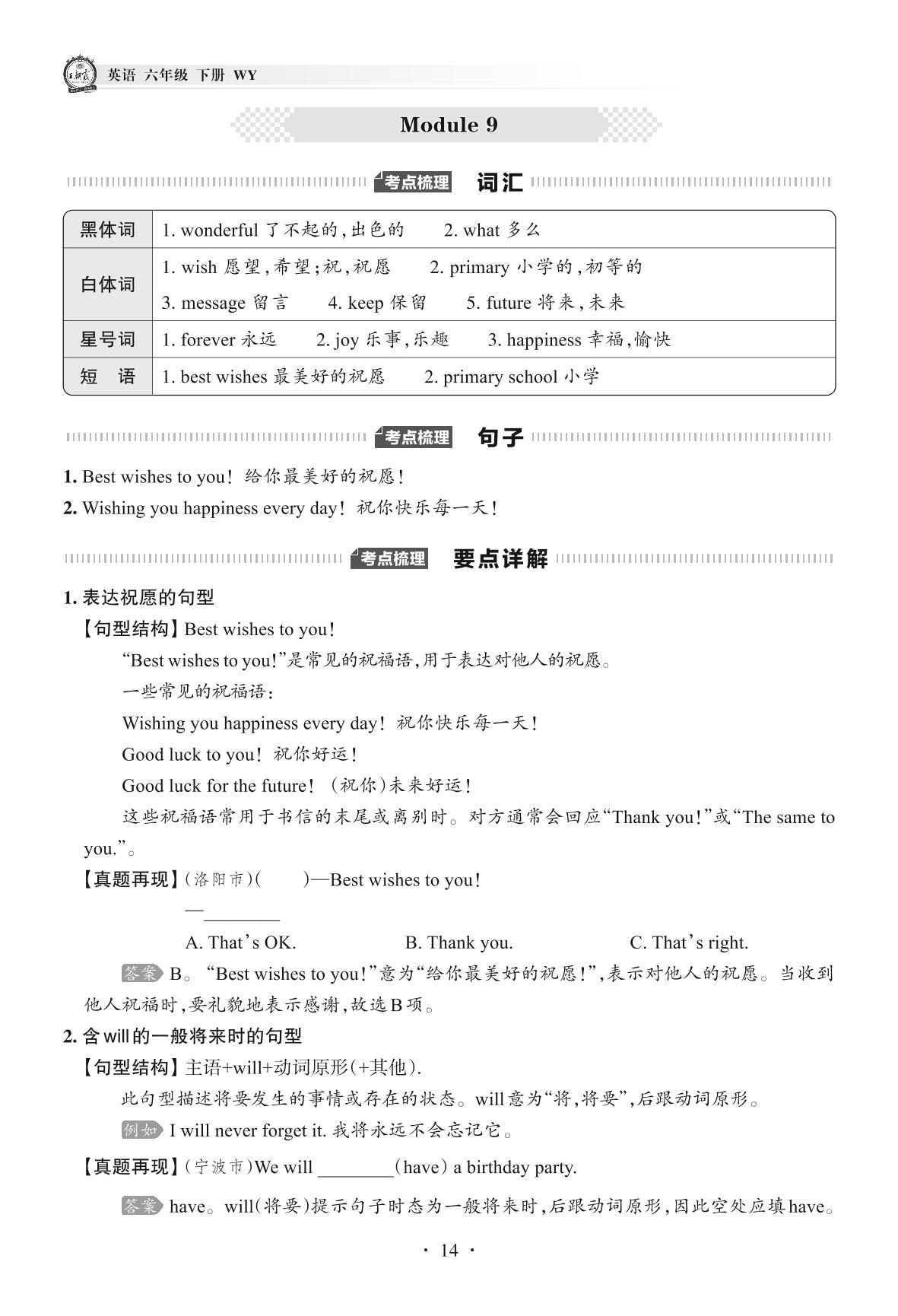 2022下册六年级英语外研版 单元考点梳理——Module 9
