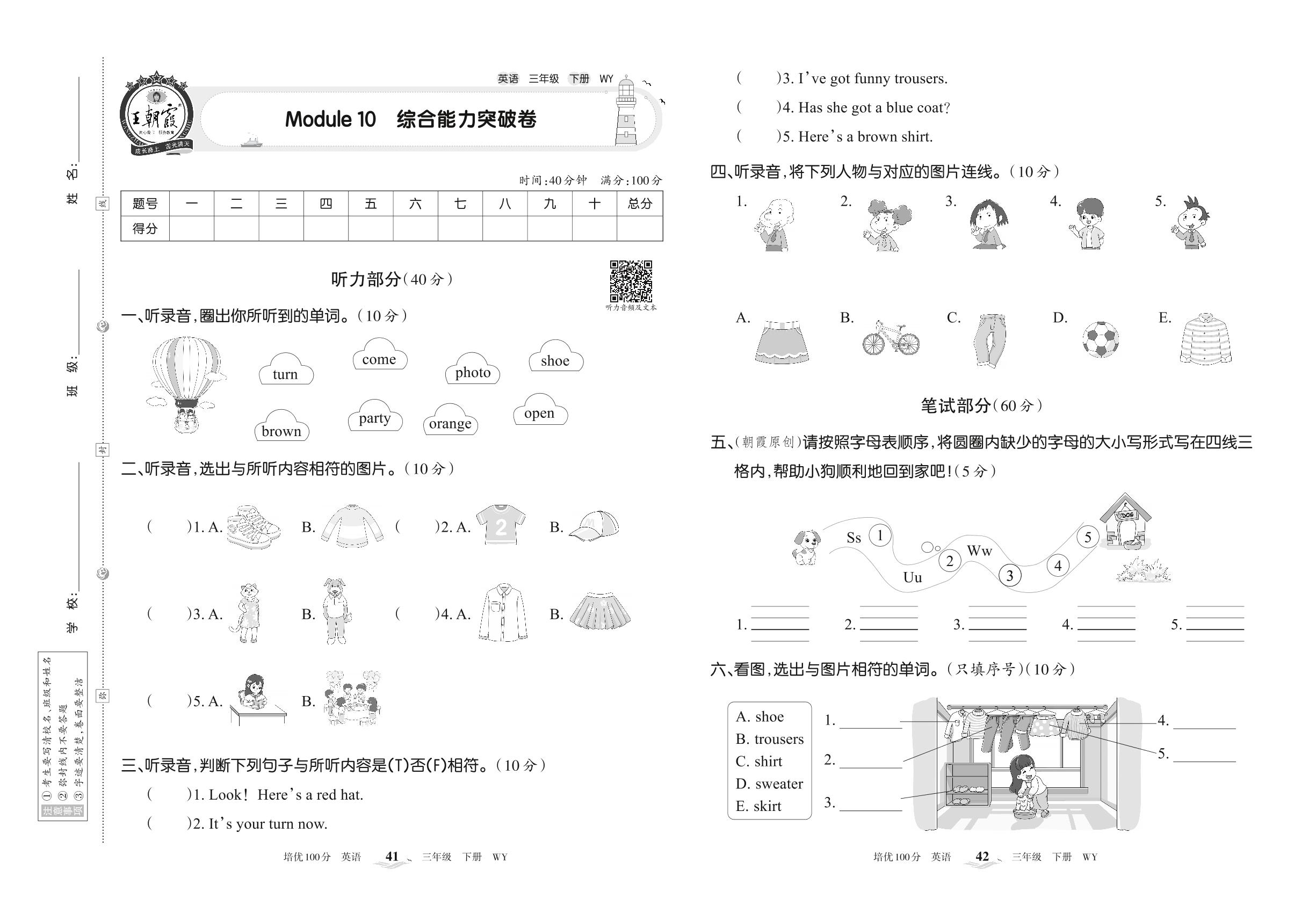2022下册三年级英语外研版 Module 10 综合能力突破卷