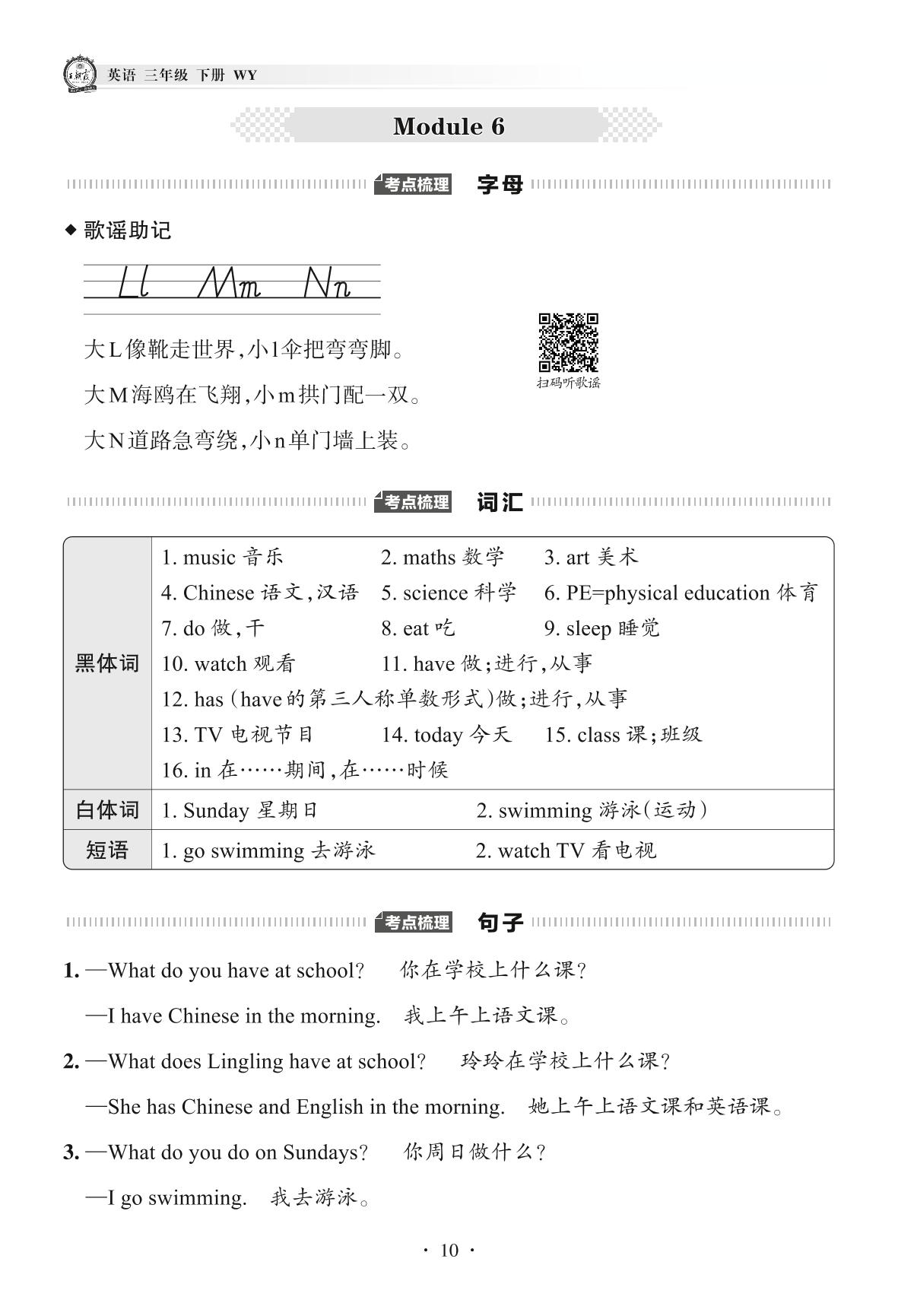 2022下册三年级英语外研版 单元考点梳理——Module 6