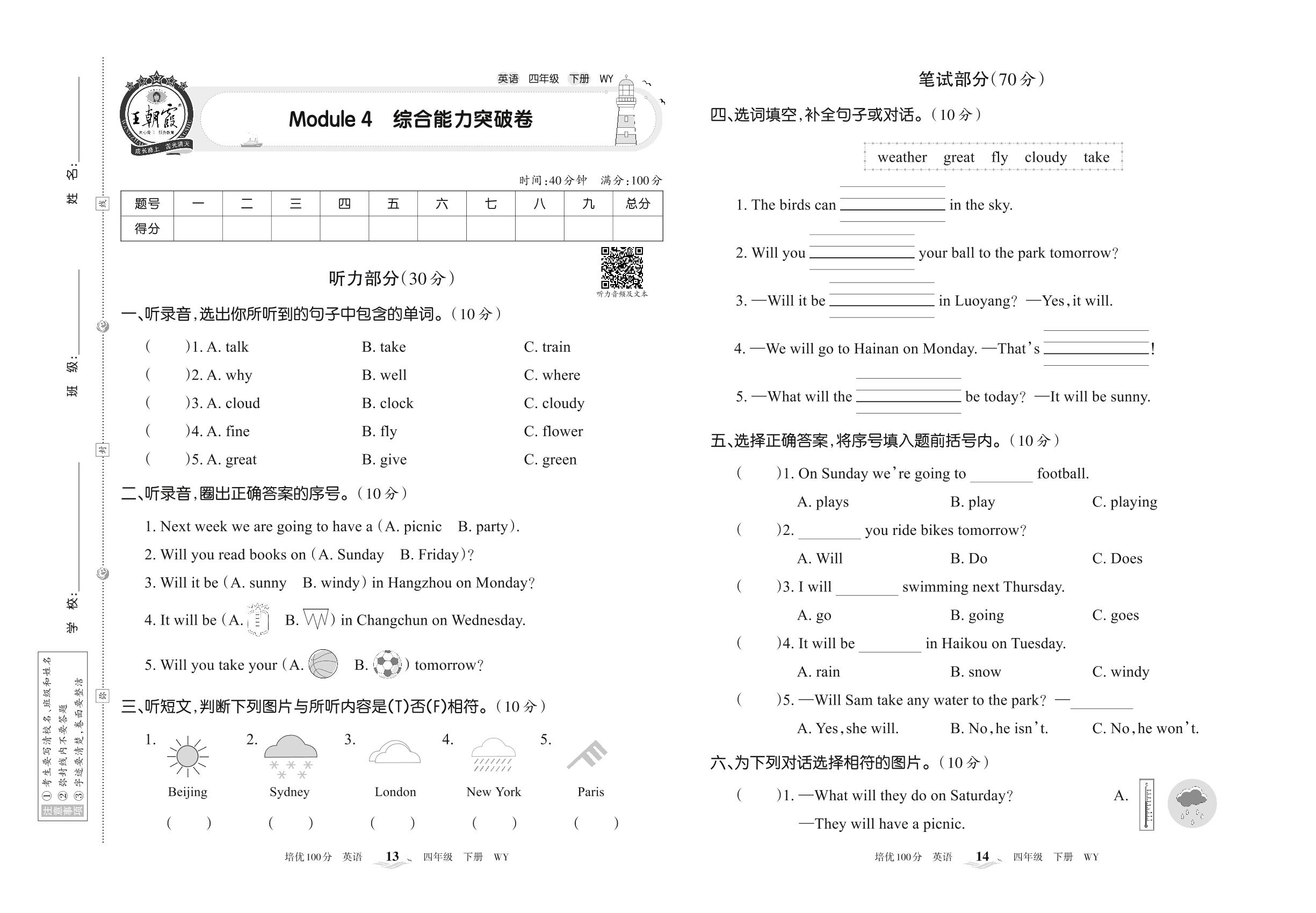 2022下册四年级英语外研版 Module 4 综合能力突破卷