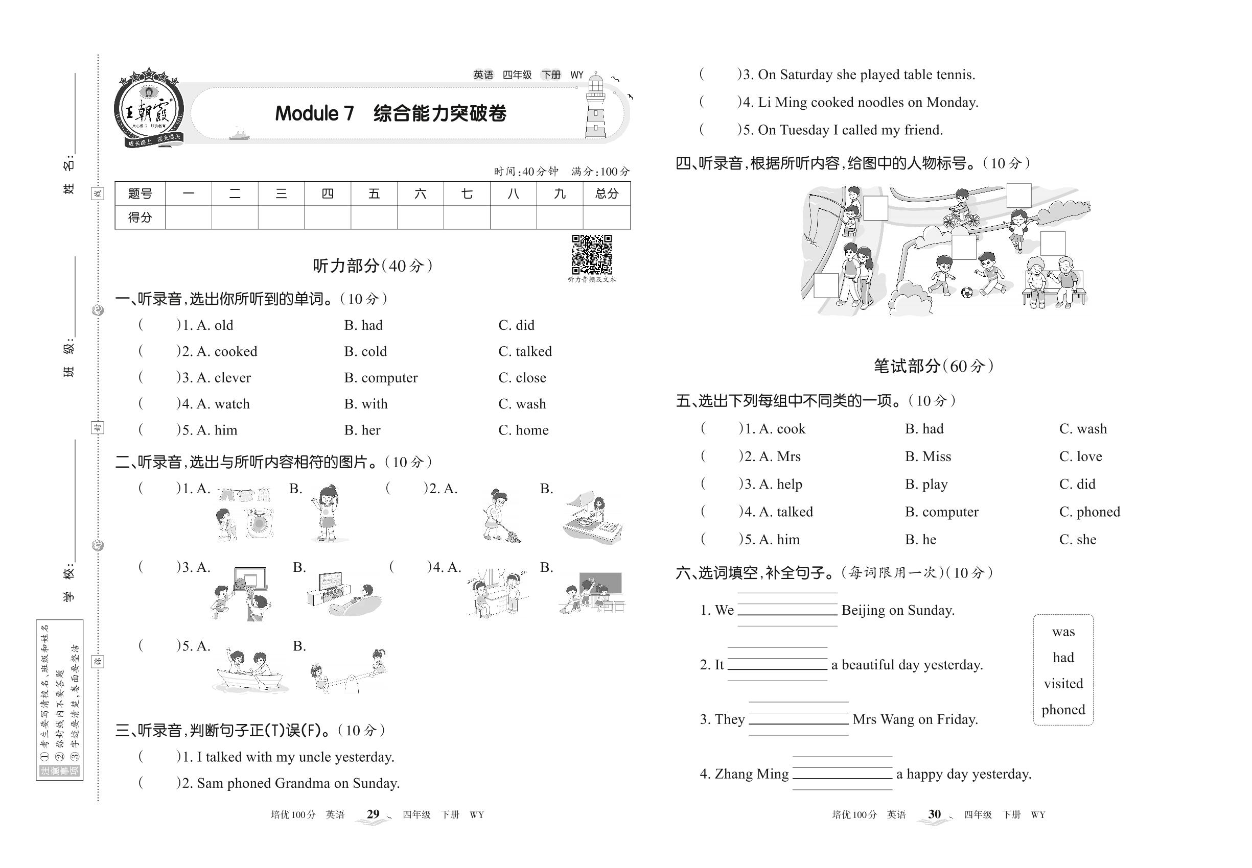 2022下册四年级英语外研版 Module 7 综合能力突破卷