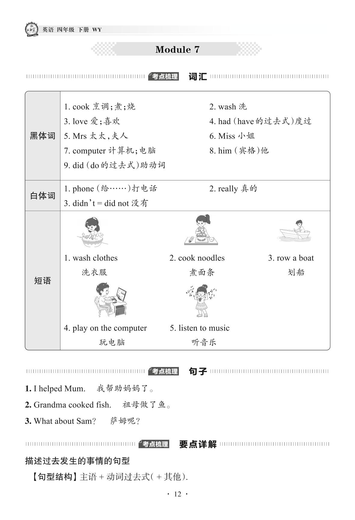 2022下册四年级英语外研版 单元考点梳理——Module 7