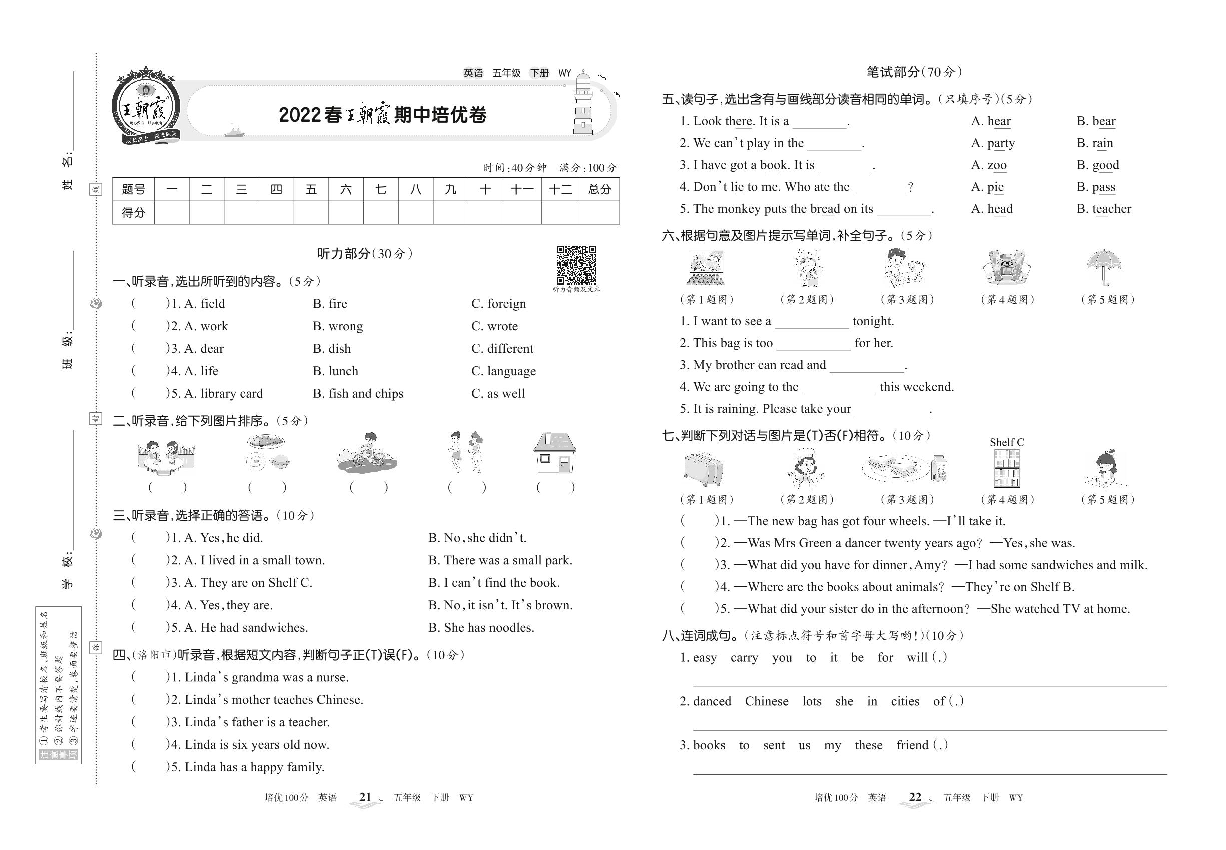2022下册五年级英语外研版 王朝霞期中培优卷