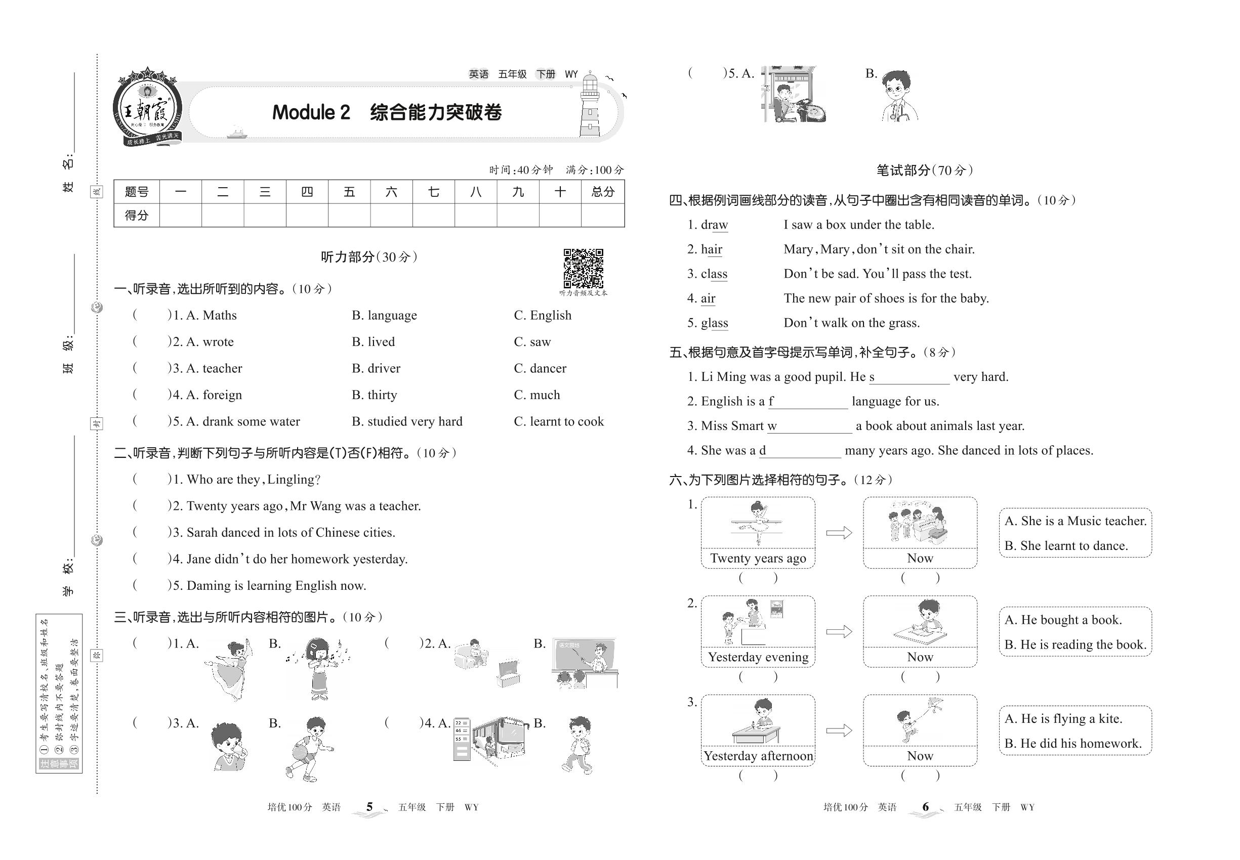 2022下册五年级英语外研版 Module 2 综合能力突破卷