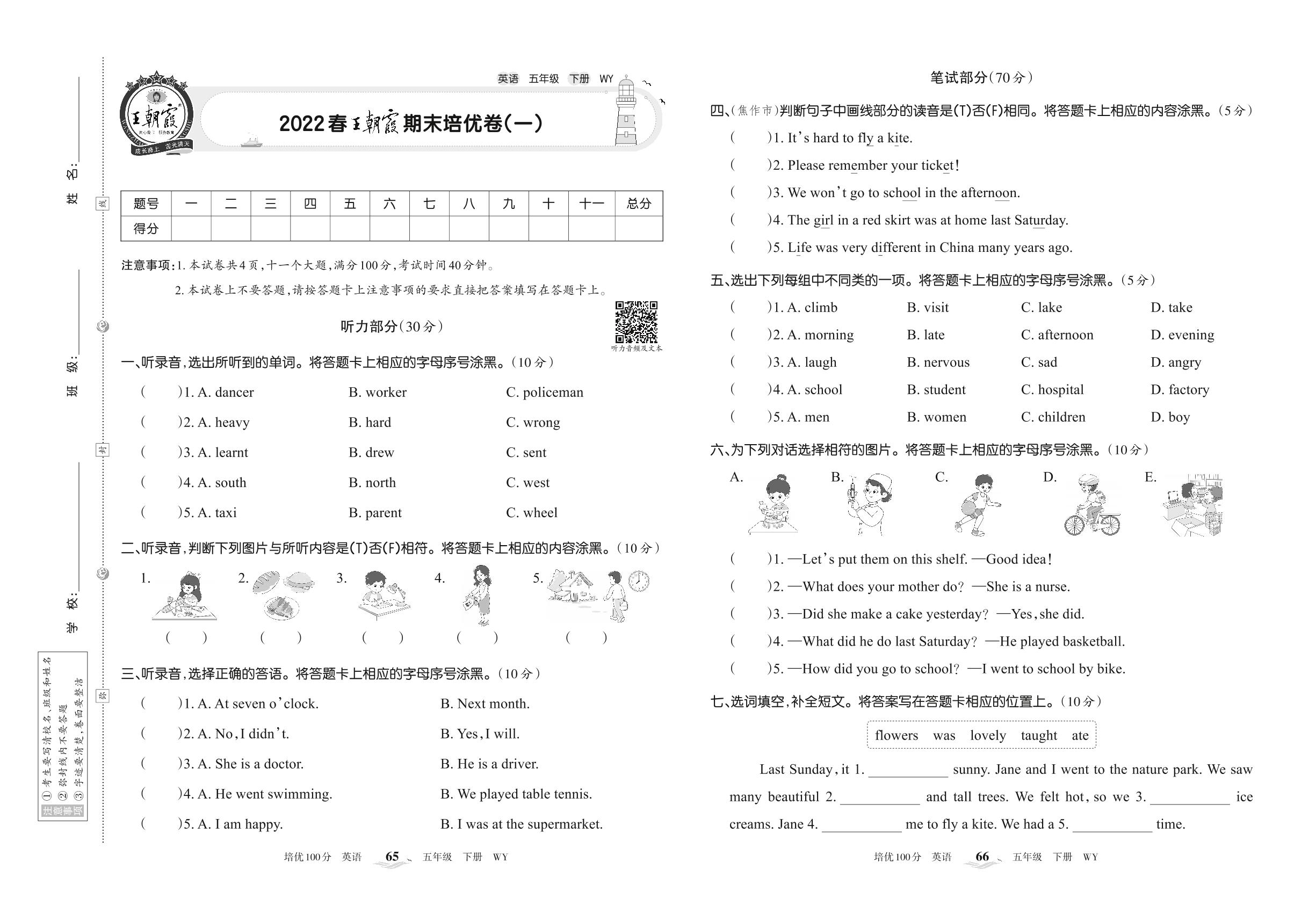 2022下册五年级英语外研版 王朝霞期末培优卷(一)