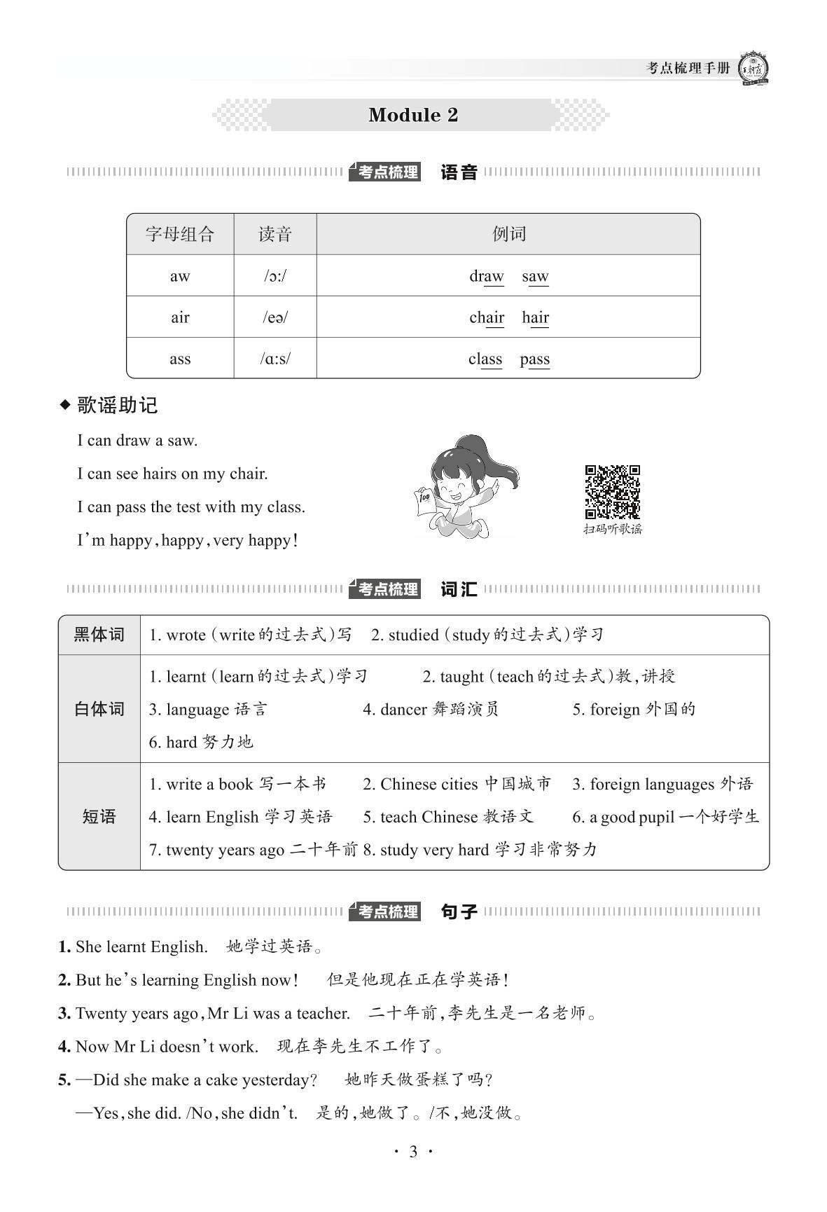 2022下册五年级英语外研版 单元考点梳理——Module 2