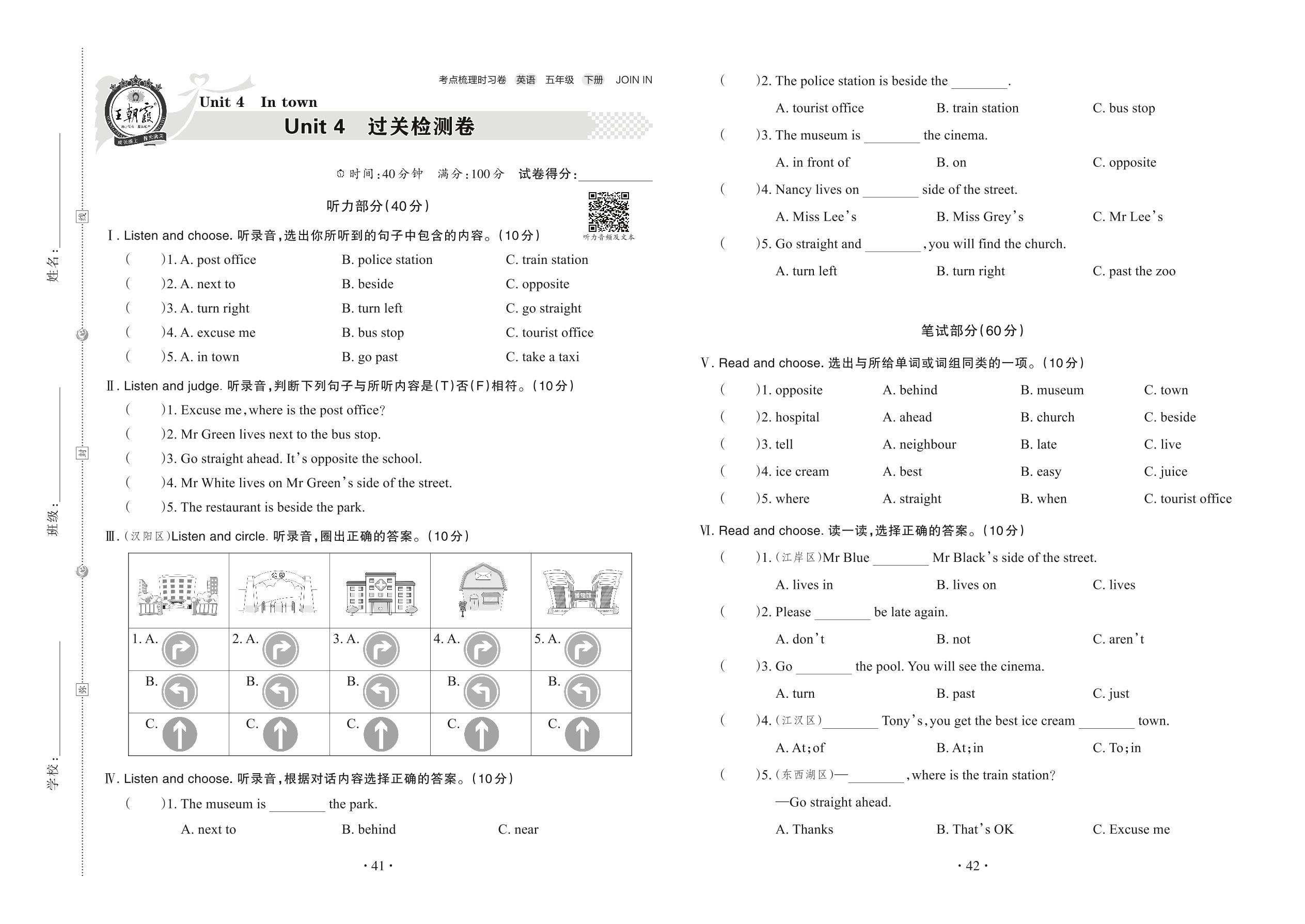 五年级英语剑桥版下册单元卷
