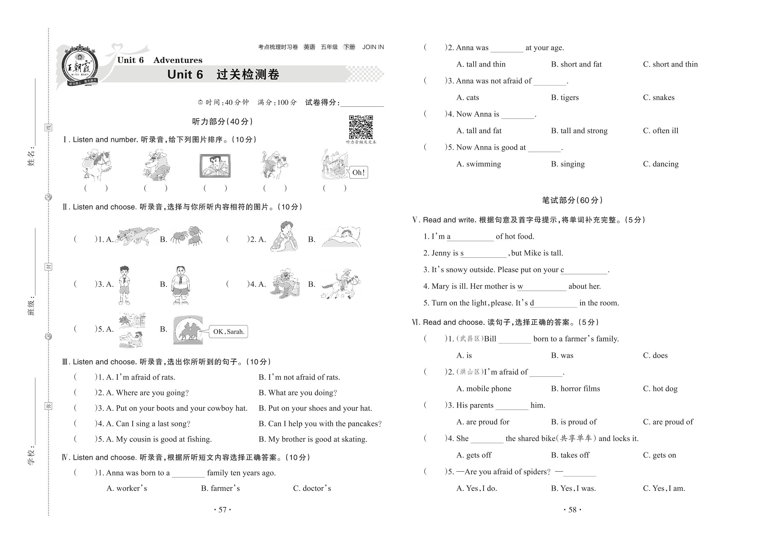 2022下册五年级英语剑桥版 Unit 6 过关检测卷
