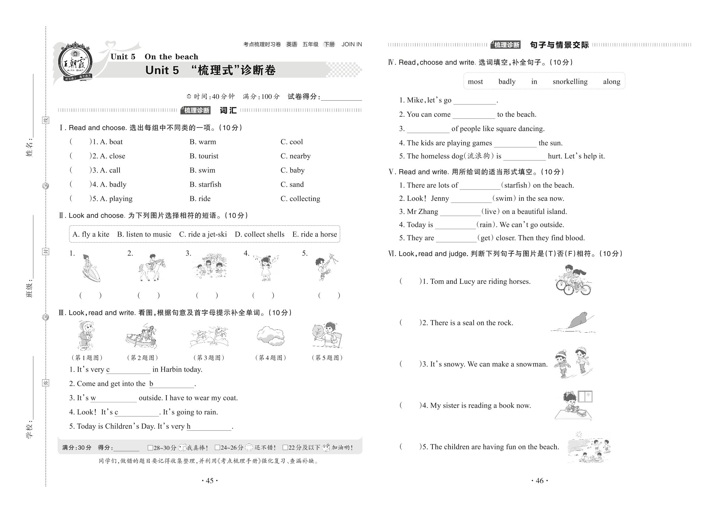 2022下册五年级英语剑桥版 Unit 5 “梳理式”诊断卷