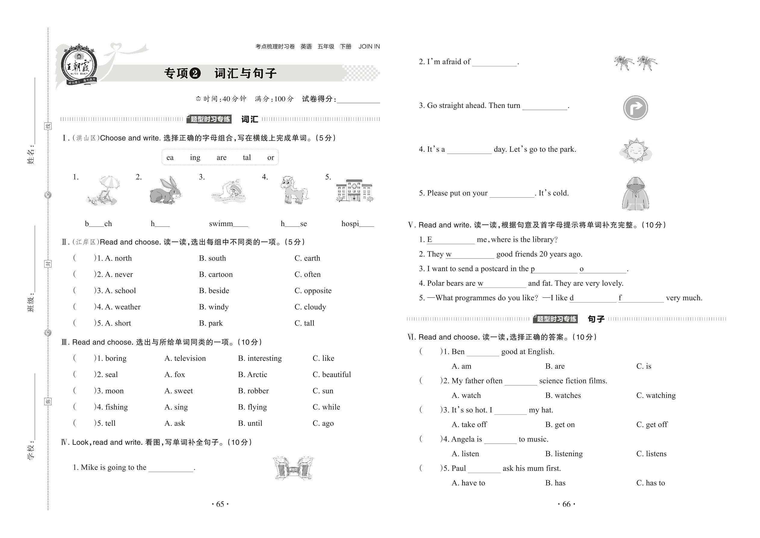 2022下册五年级英语剑桥版 专项2 词汇与句子