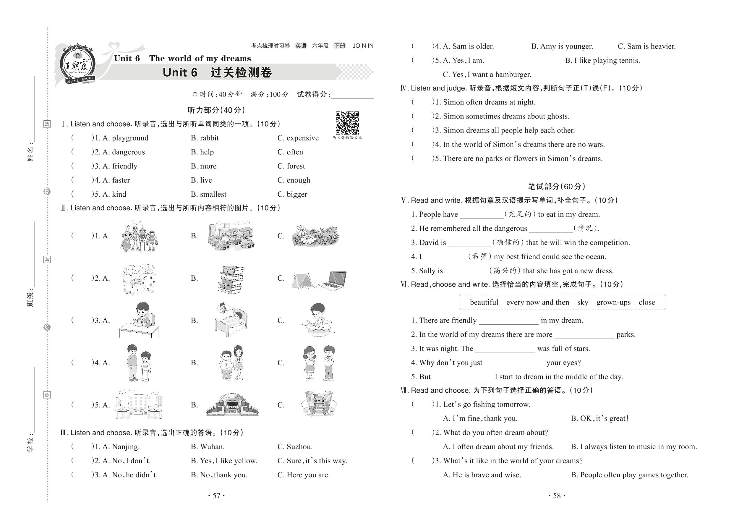 2022下册六年级英语剑桥版 Unit 6 过关检测卷