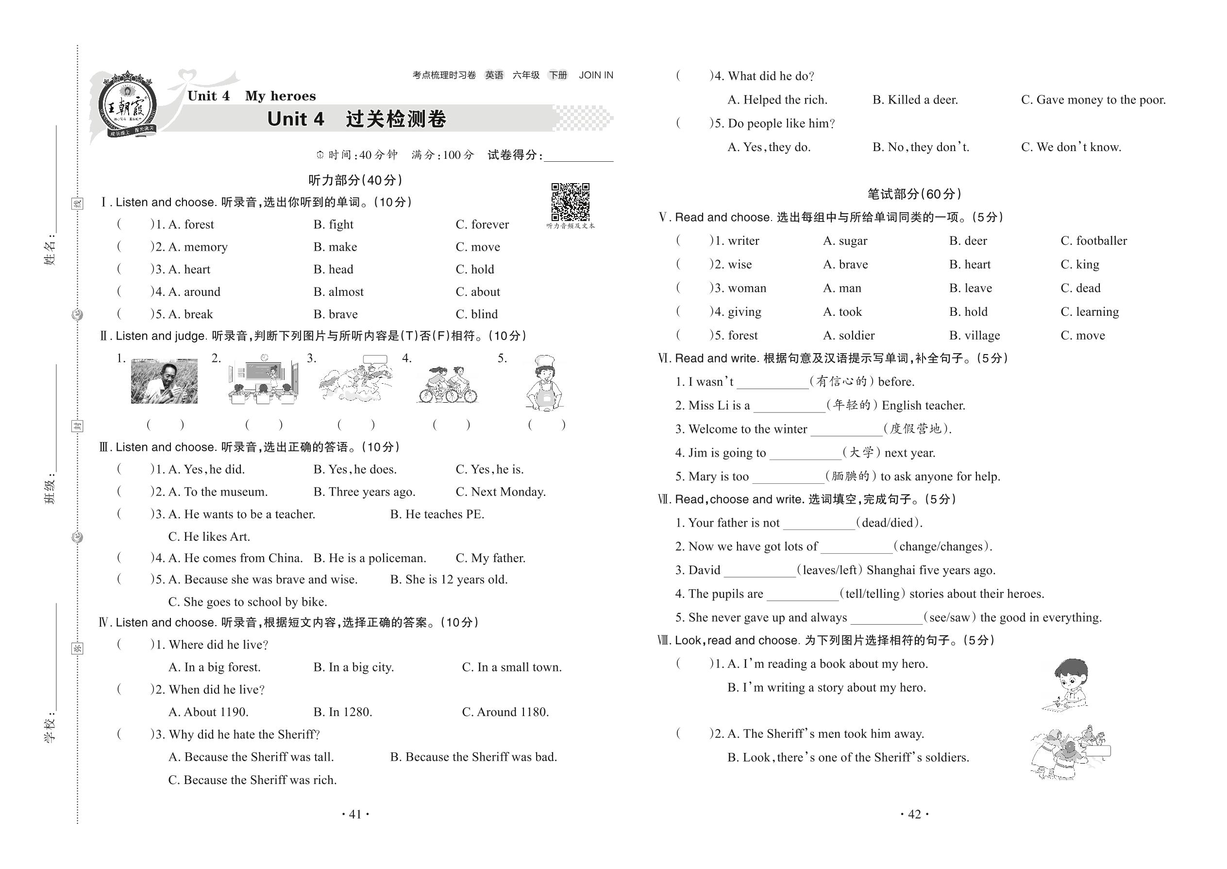六年级英语剑桥版下册单元卷