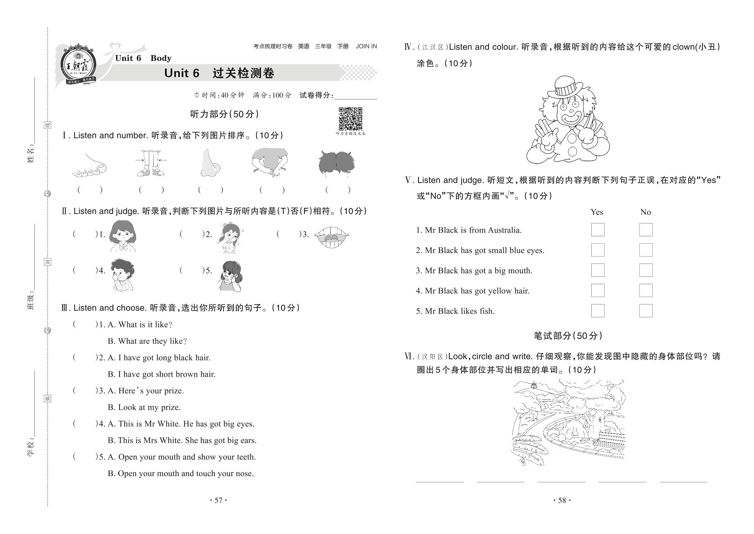 三年级英语剑桥版下册单元卷