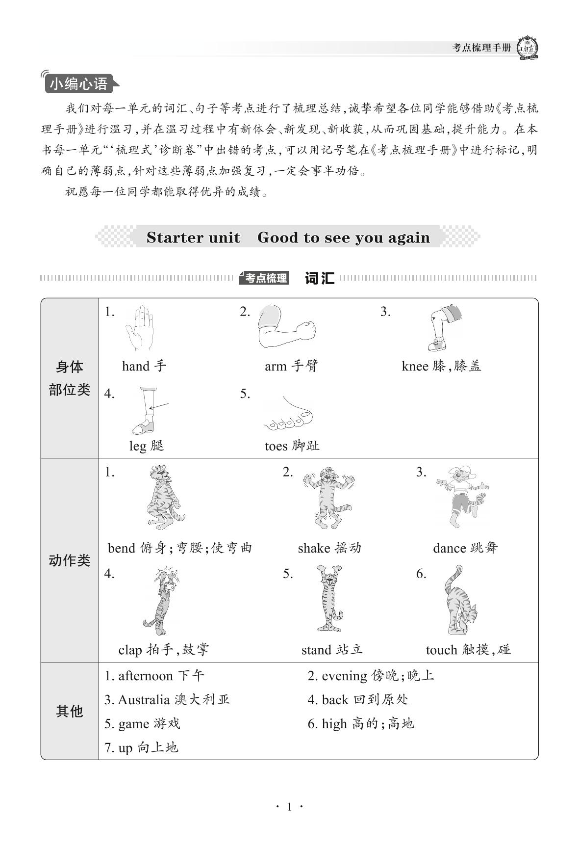 2022下册三年级英语剑桥版 单元考点梳理——Starter unit Good to see you again _R220120103242783