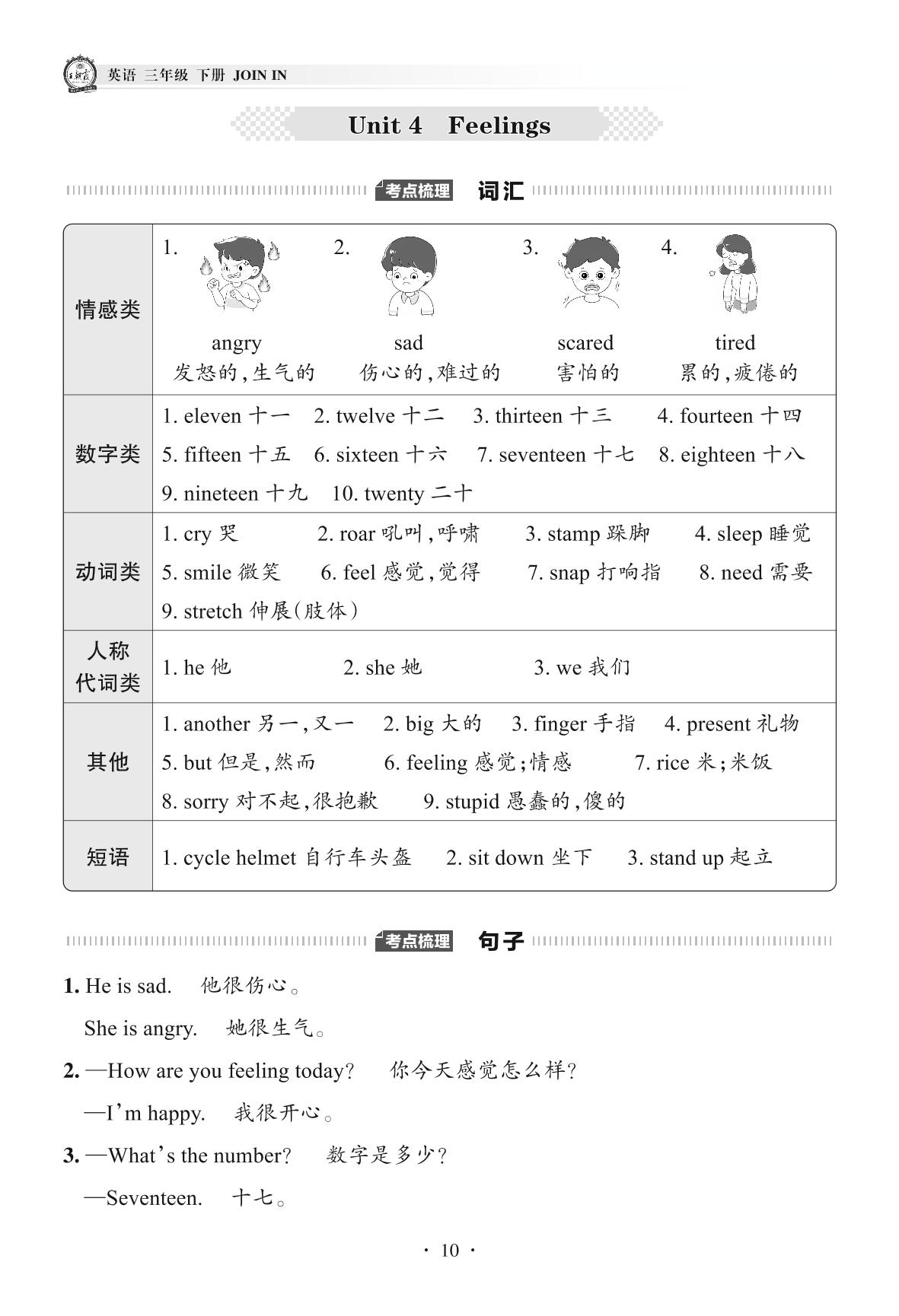 2022下册三年级英语剑桥版 单元考点梳理——Unit 4 Feelings _R220120103242492