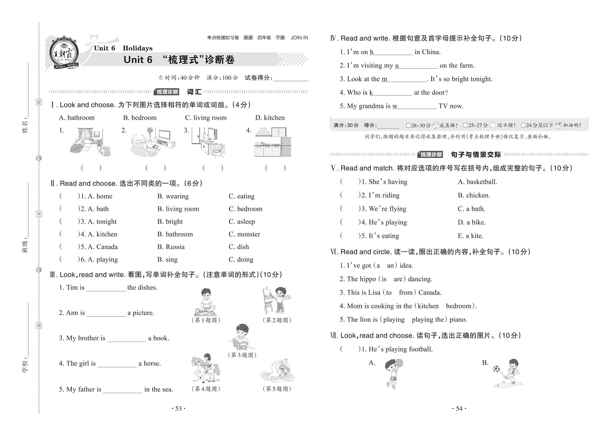 2022下册四年级英语剑桥版 Unit 6 “梳理式”诊断卷